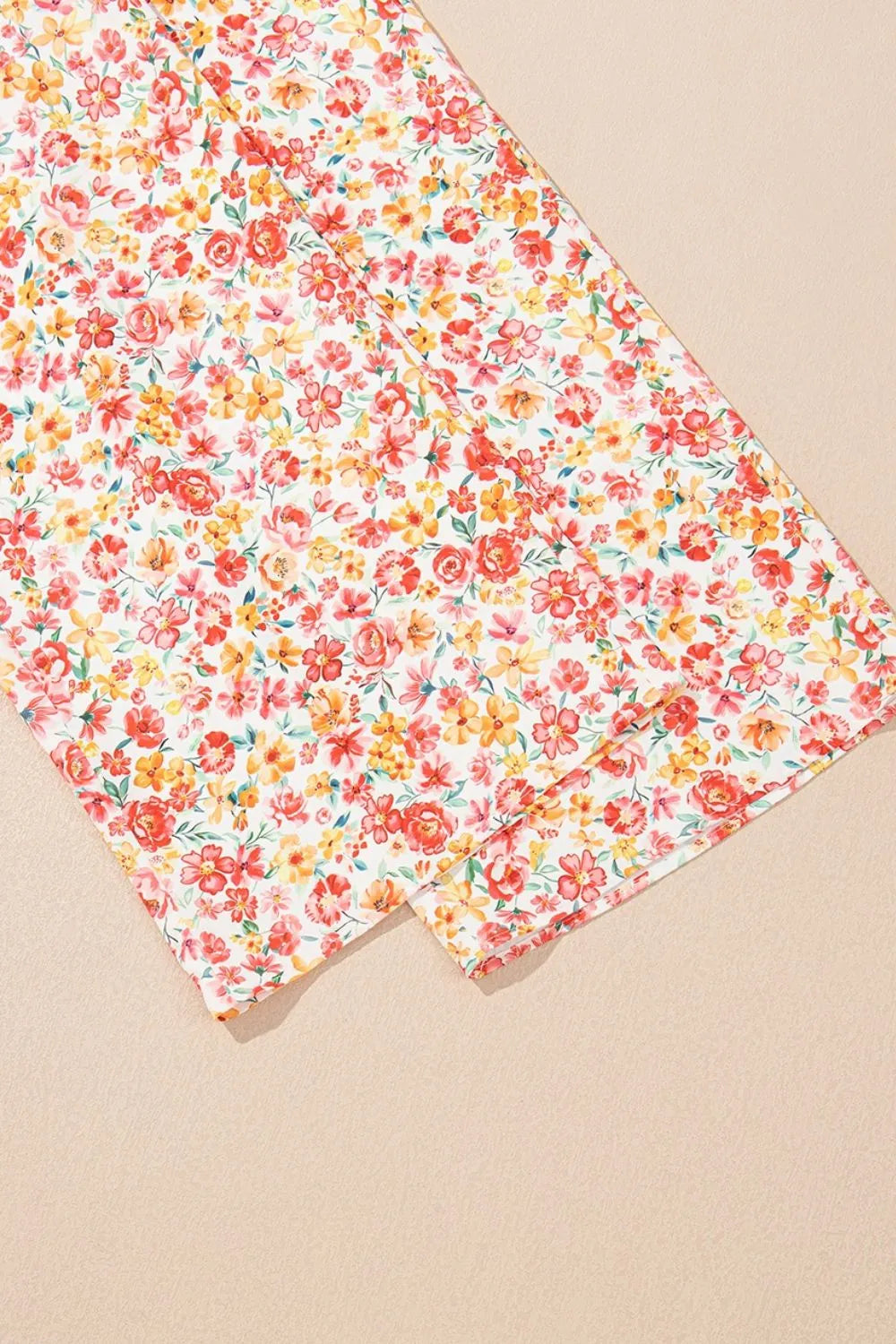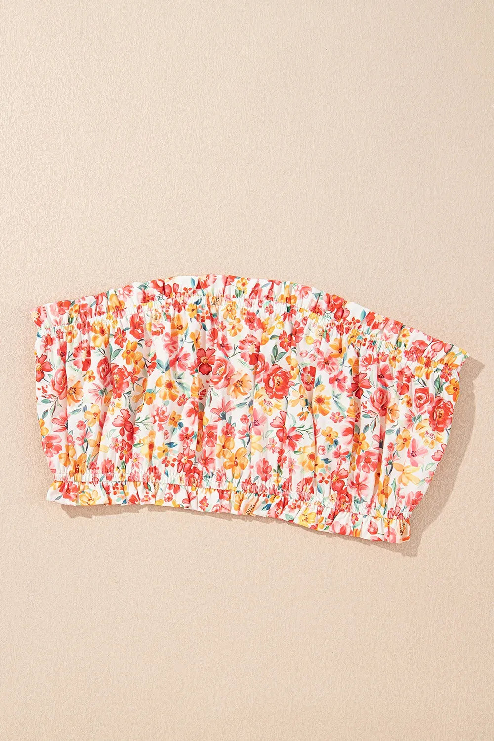 Boho Floral Bandeau Top and High Waist Wide Leg Pants Set