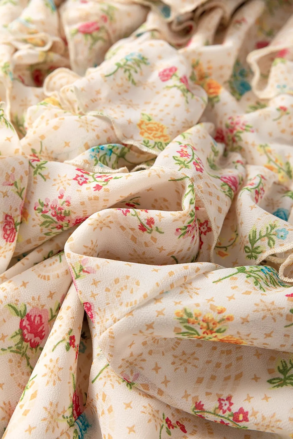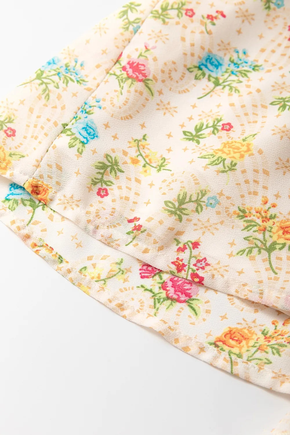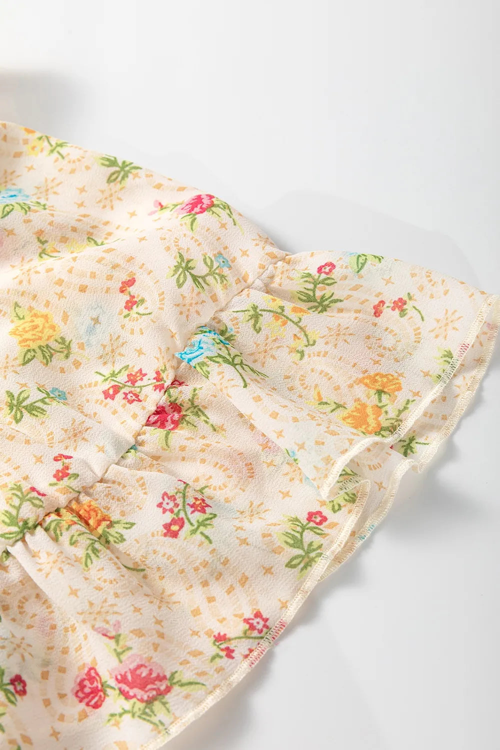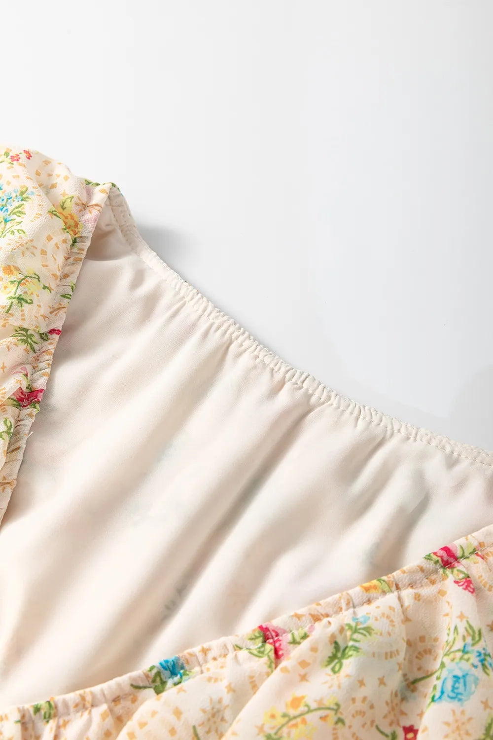 Boho Floral Tassel Tie V Neck Ruffle Wide Sleeve Mini Dress