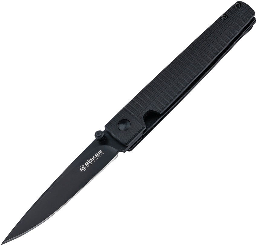 4.13" (10.49cm) closed. 3.13" (7.95cm) black finish 440A stainless blade. Black G10 handle. Thumb stud. Pocket clip. Boxed. No Amazon... Read more