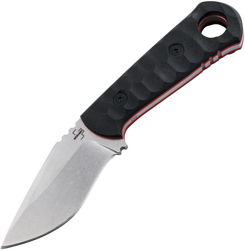 7.13" (18.11cm) overall. 3.13" (7.95cm) stonewash finish D2 tool steel blade. Black G10 handle. Full tang. Lanyard hole. Red liners.... Read more