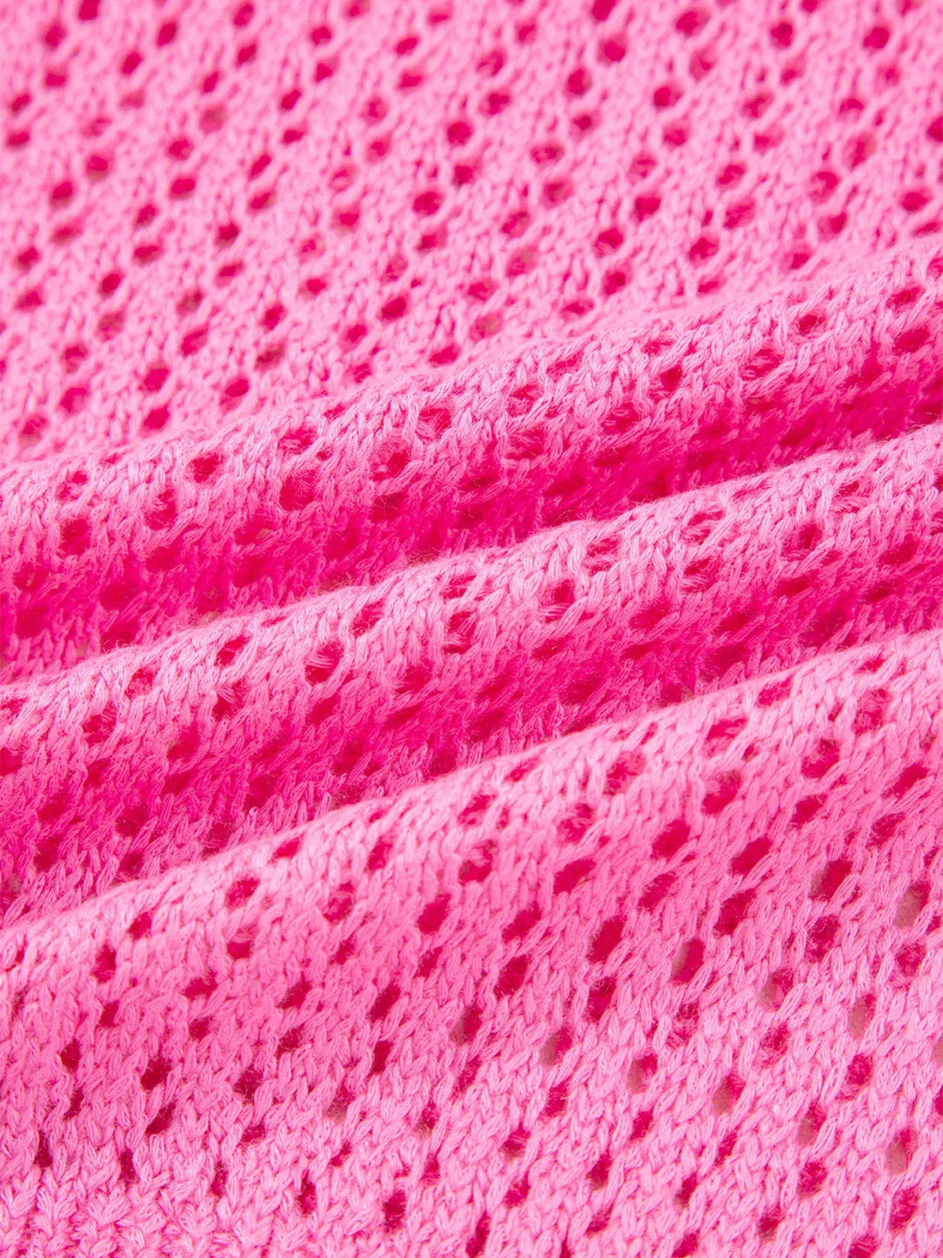 Bow Decor Hollow Out Knitted Drop Shoulder Sweater