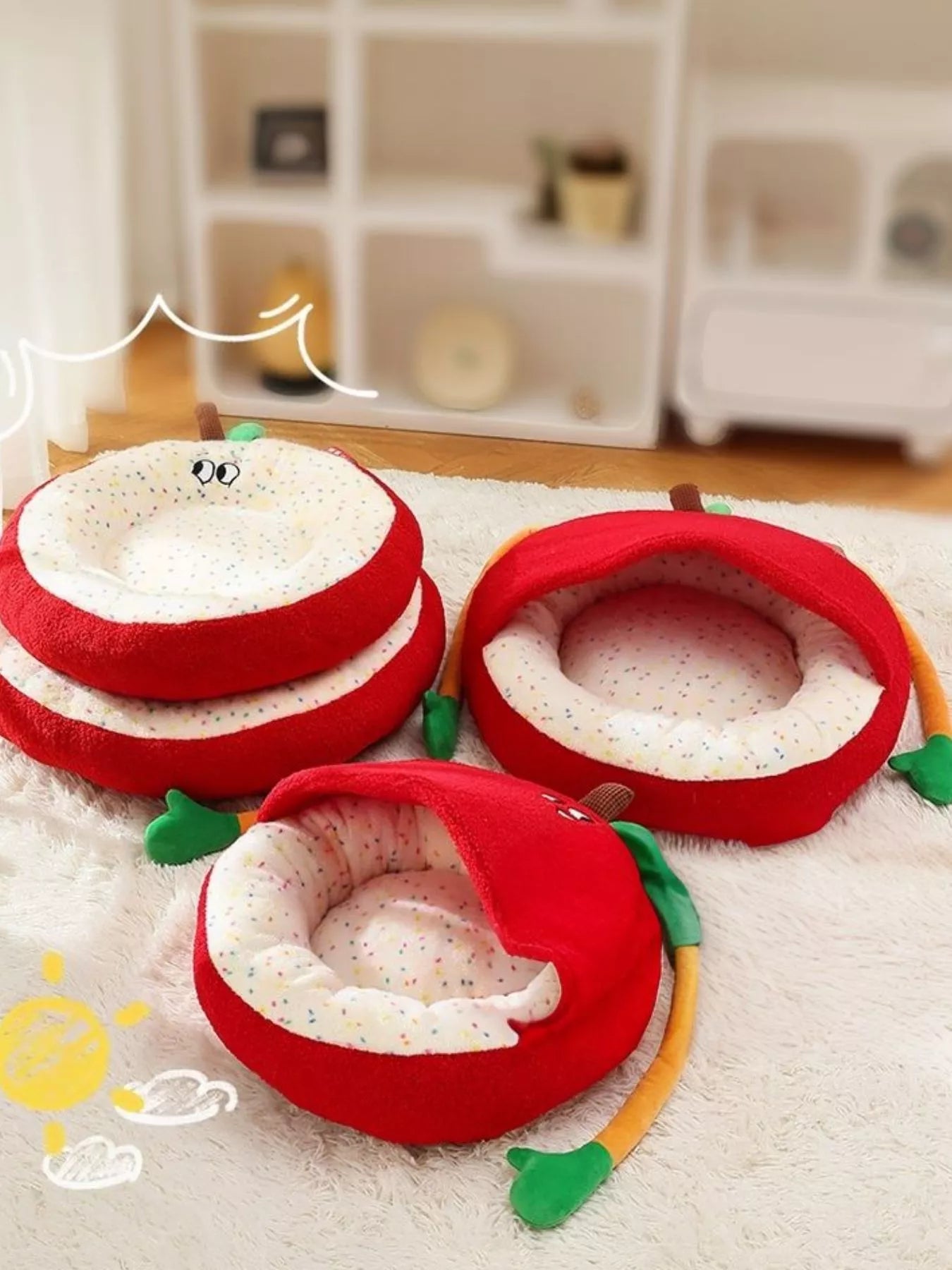 Cartoon Apple Shape Pet Nest with Plush Arms
