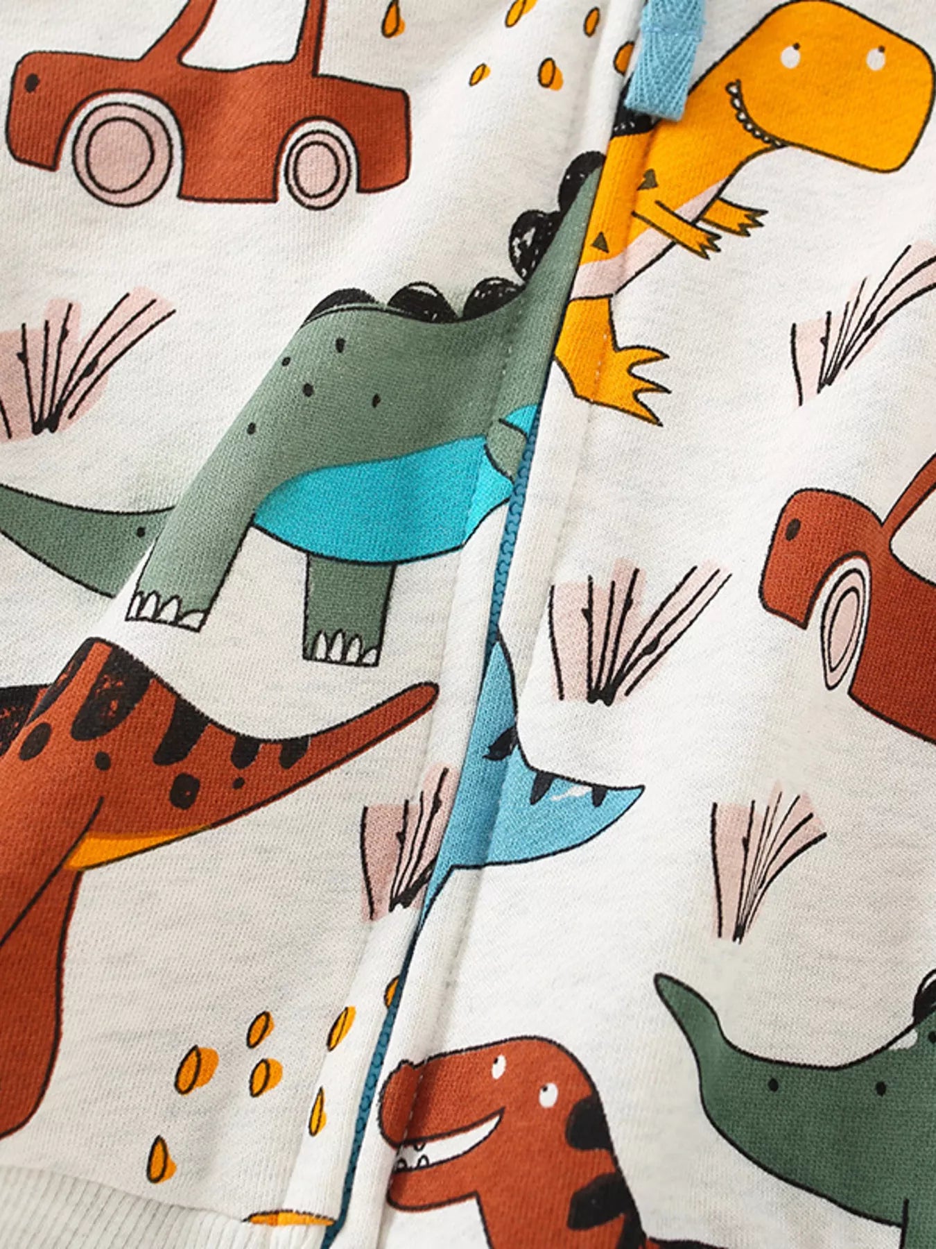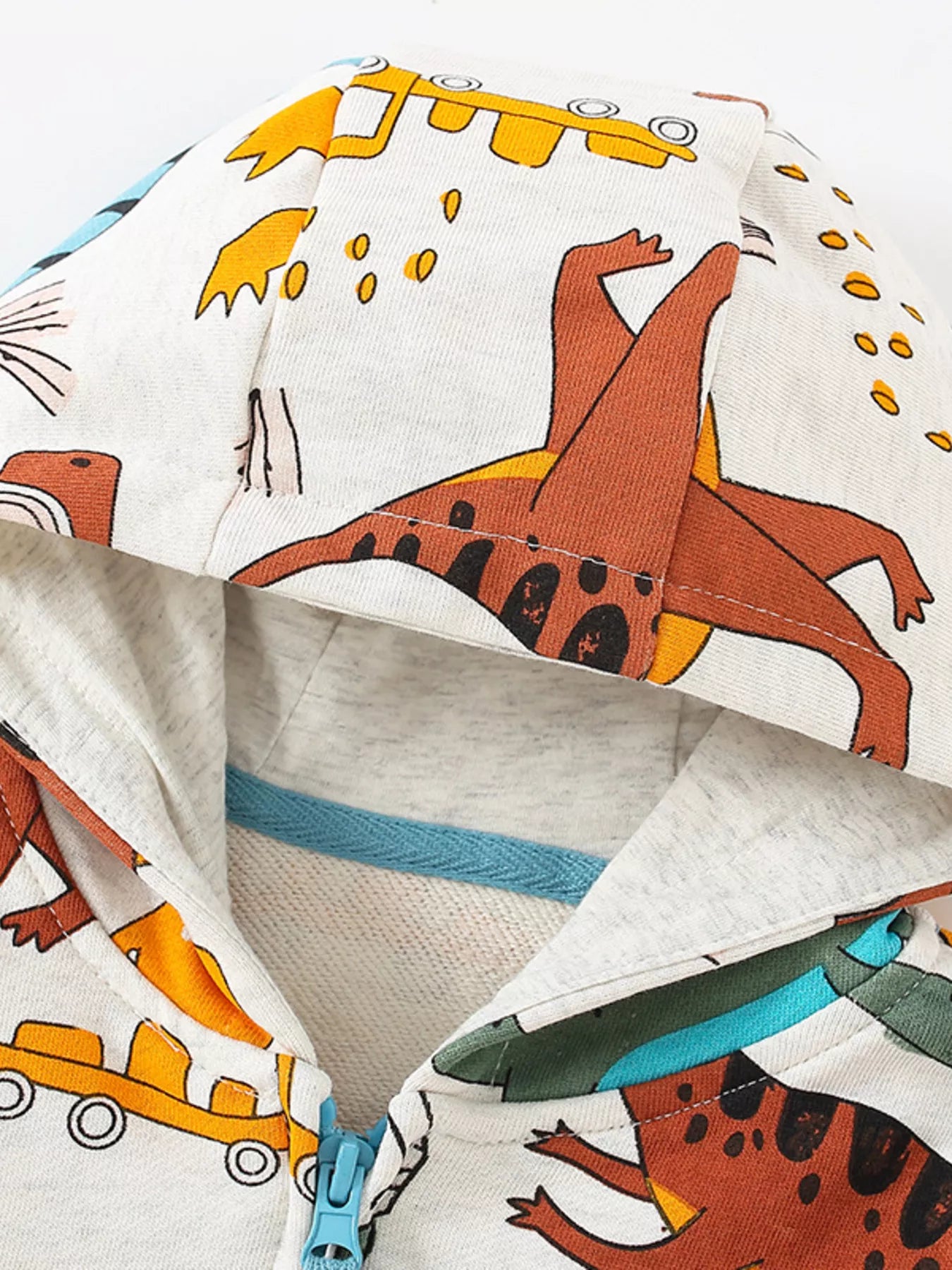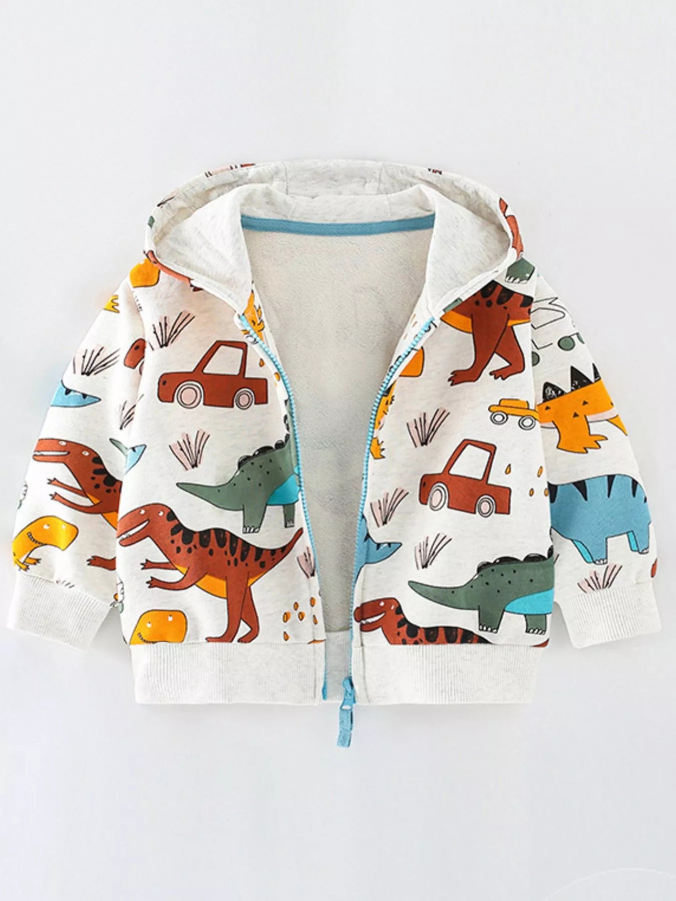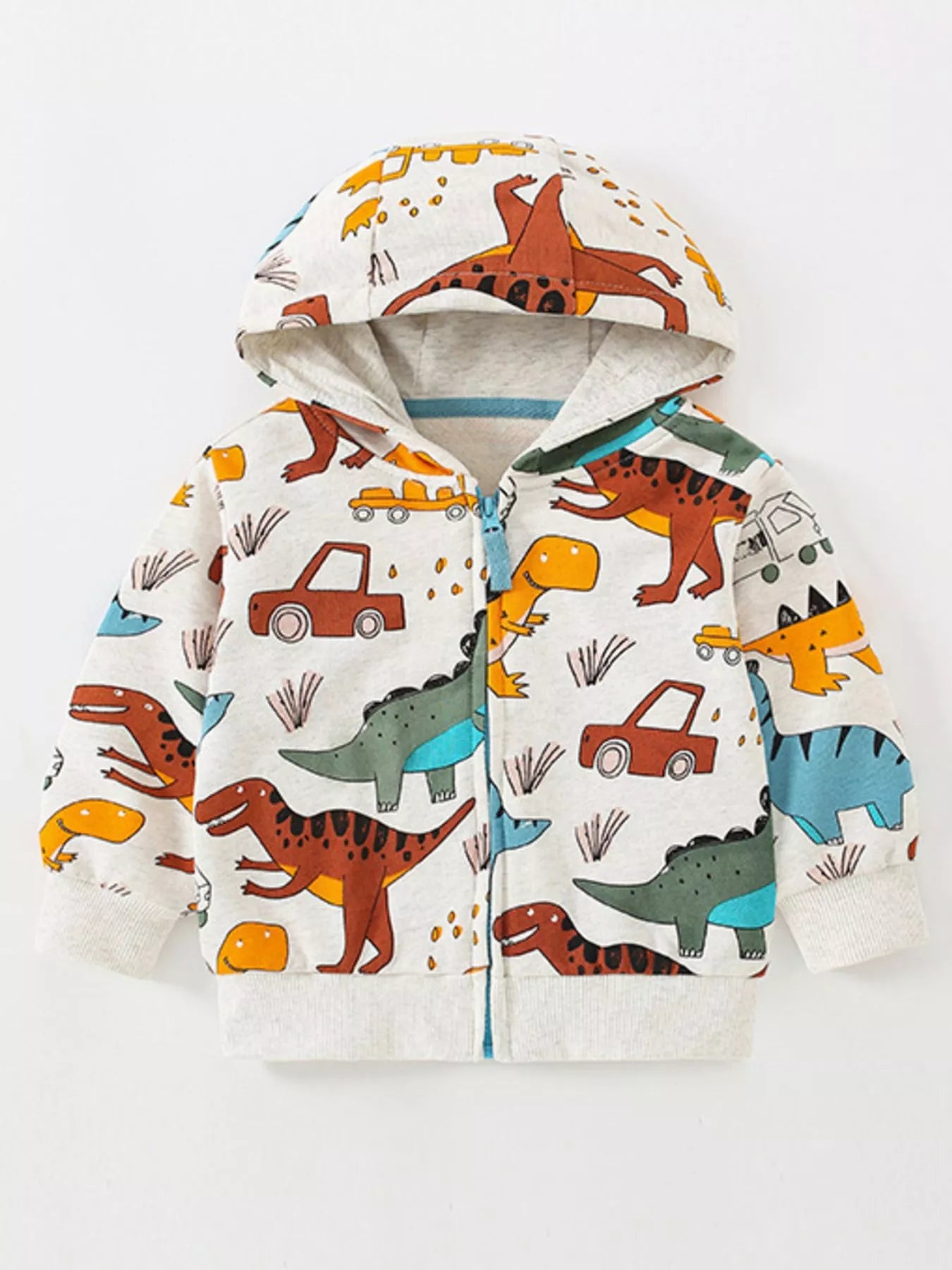 Children's Dinosaur & Car Print Zip-Up Hooded Jacket