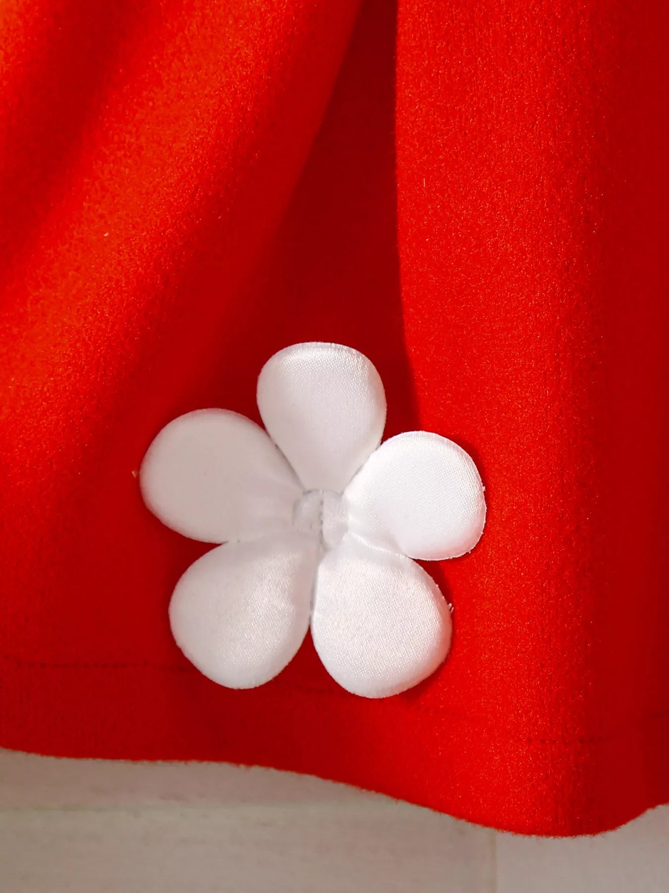 Children's Floral Applique Ribbed Knit Top & Pleated Skirt Set with Hat