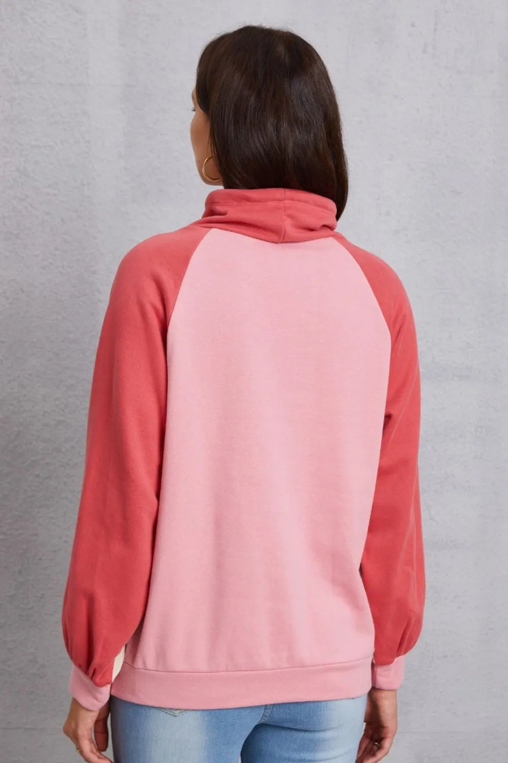 Color Block Drawstring Mock Neck Sweatshirt