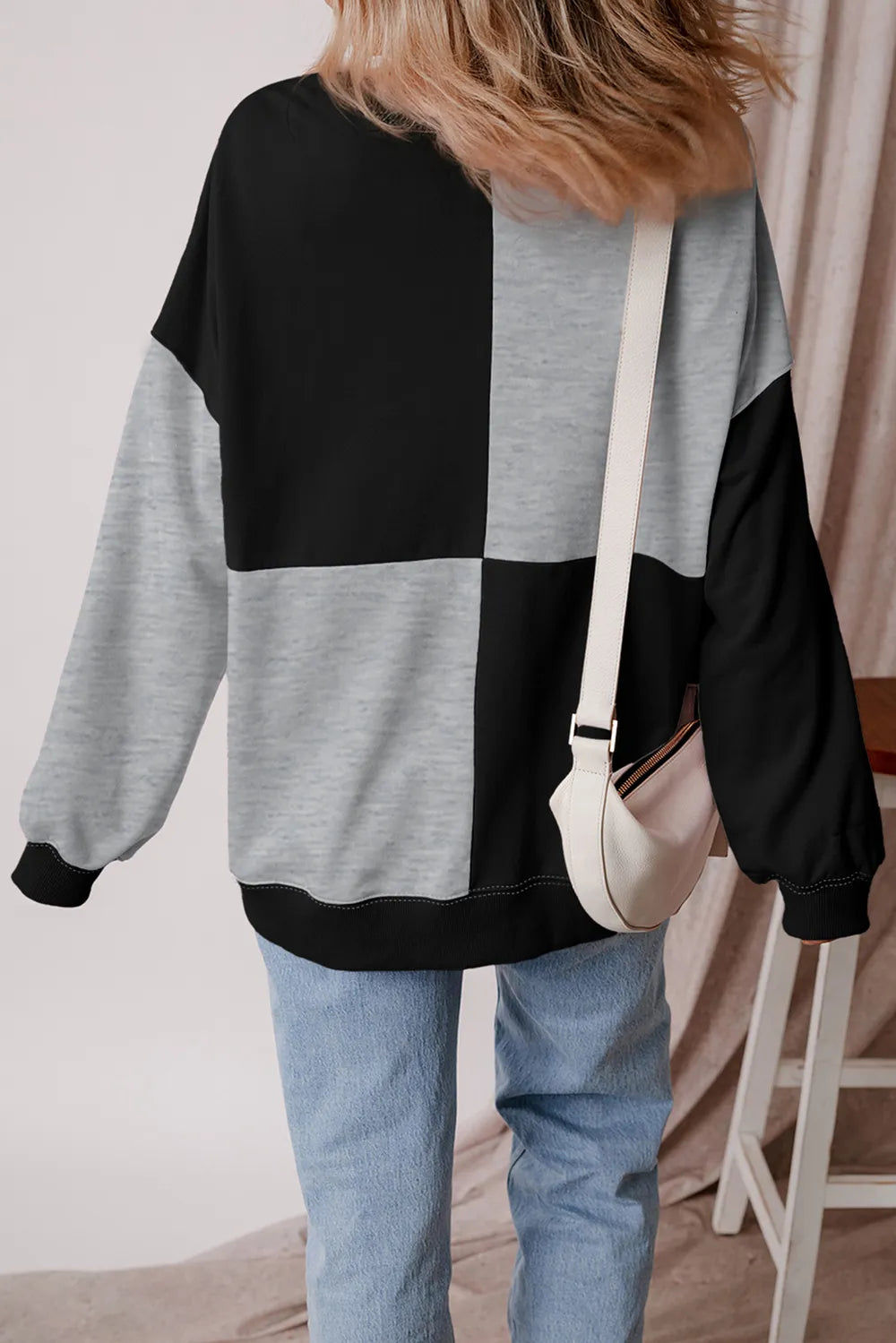 Color Block Half Button Long Sleeve Sweatshirt
