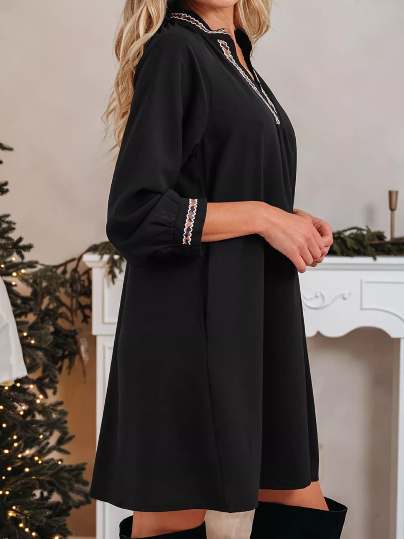 Contrast Trim Bracelet Sleeve Shift Mini Dress