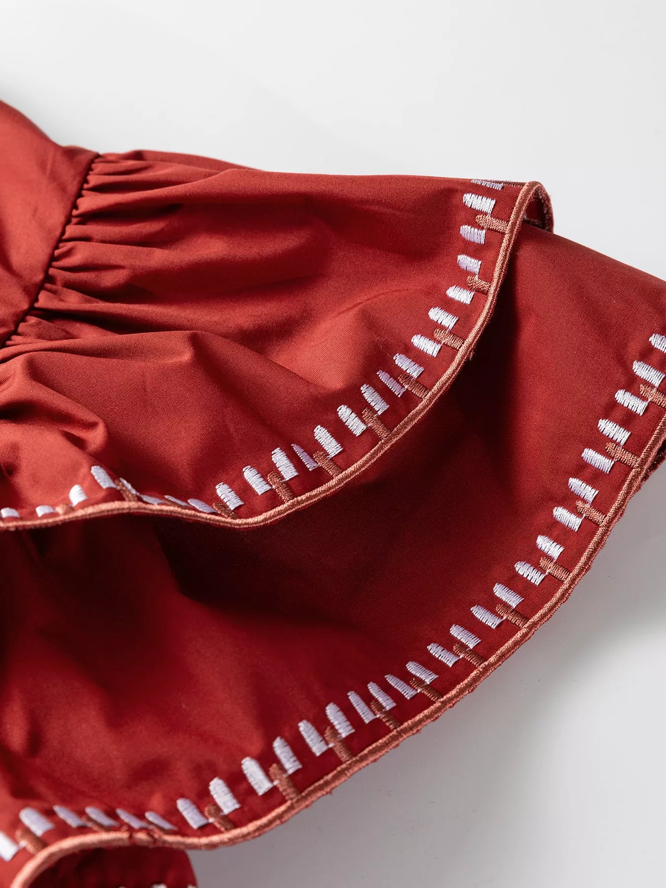 Features:Embroidered,Ruffled Stretch:No stretch Material composition:65% polyester, 35% cotton Care instructions:Machine wash cold. Tumble dry low. Imported Product Measurements (Measurements by... Read more