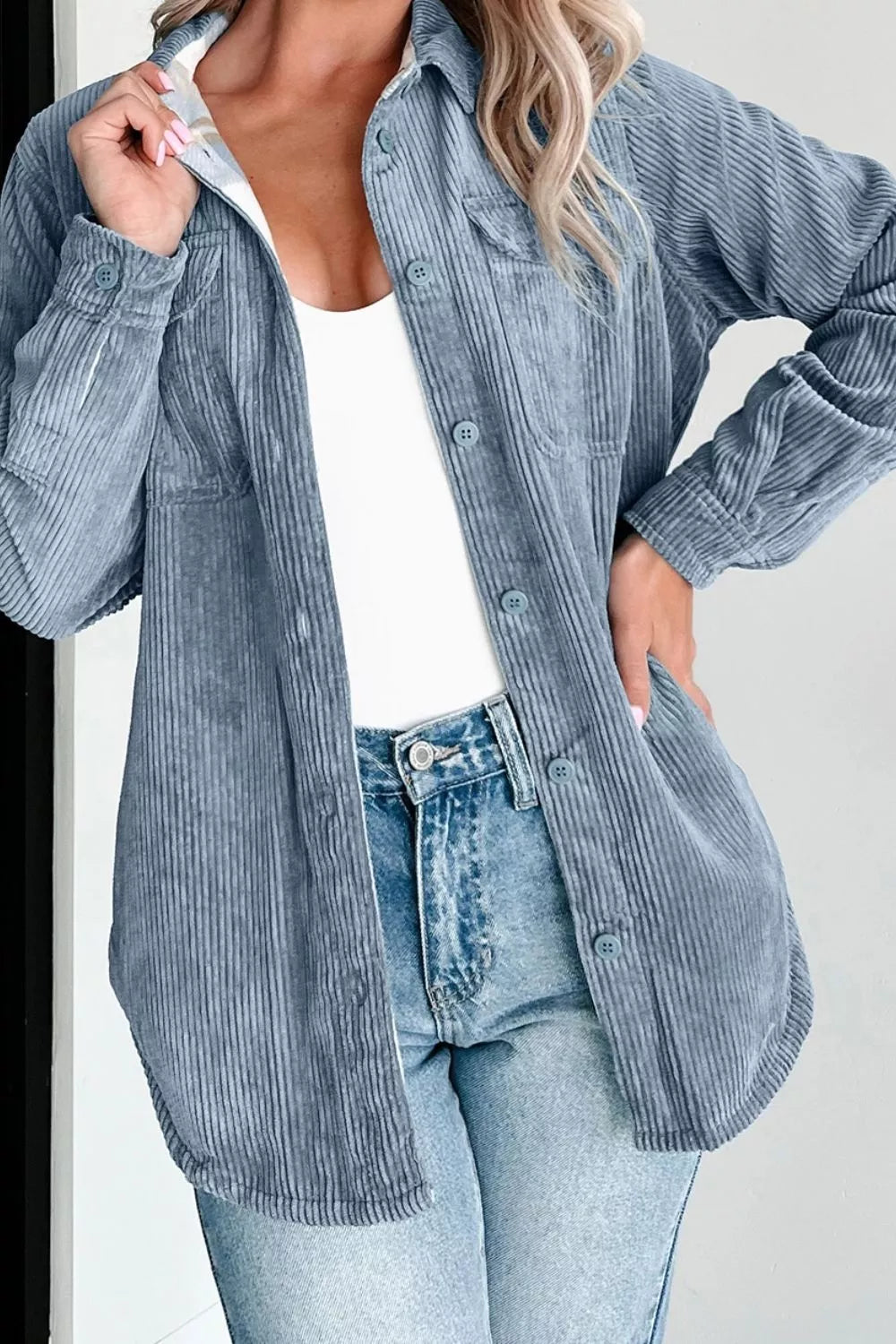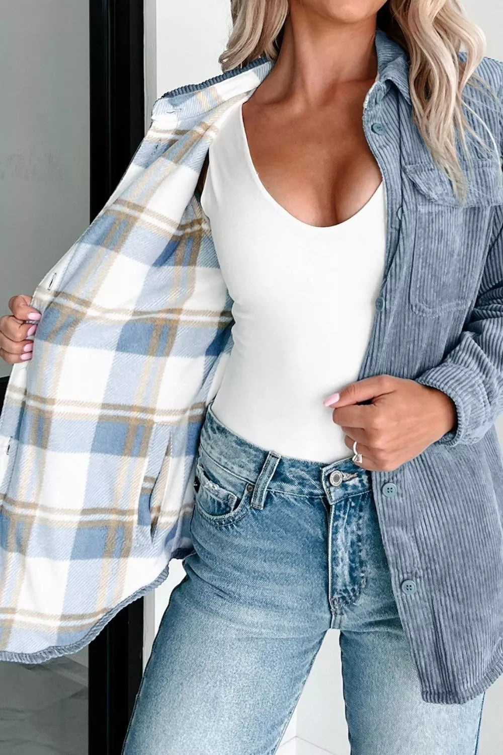 Corduroy Plaid Button-Up Shacket