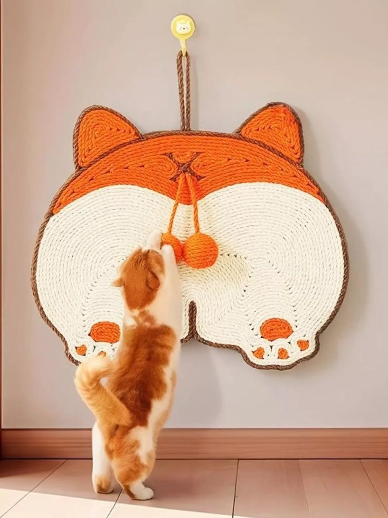 Cute Animal Design Hanging Cat Scratching Post with Dangling Balls