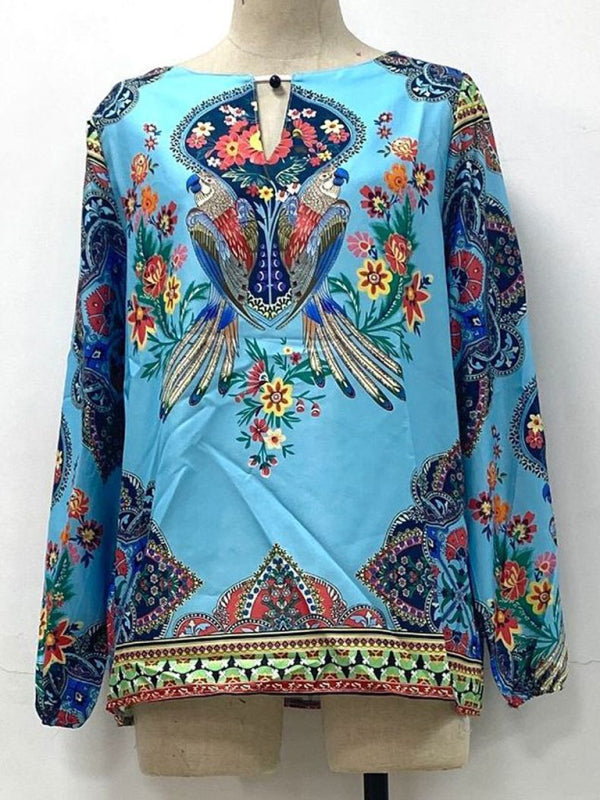 Digital Printing Round Neck Balloon Sleeve Shirt blouse. Please use the size guide shown in our pictures. Before choosing a size, please read each element of the size guide carefully. Unique design, classic style, casual and comfortable. It is suitable for outing and leisure. The size is measured manually, and the error of 1-20cm is normal.