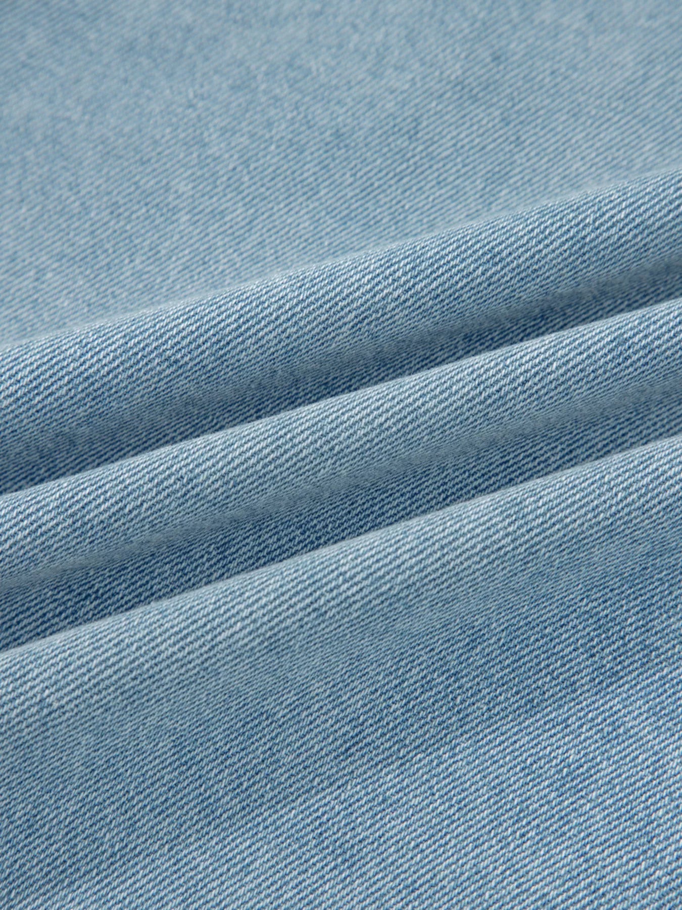 Elastic Edge Collared Zip Up Denim Jacket With Pocket