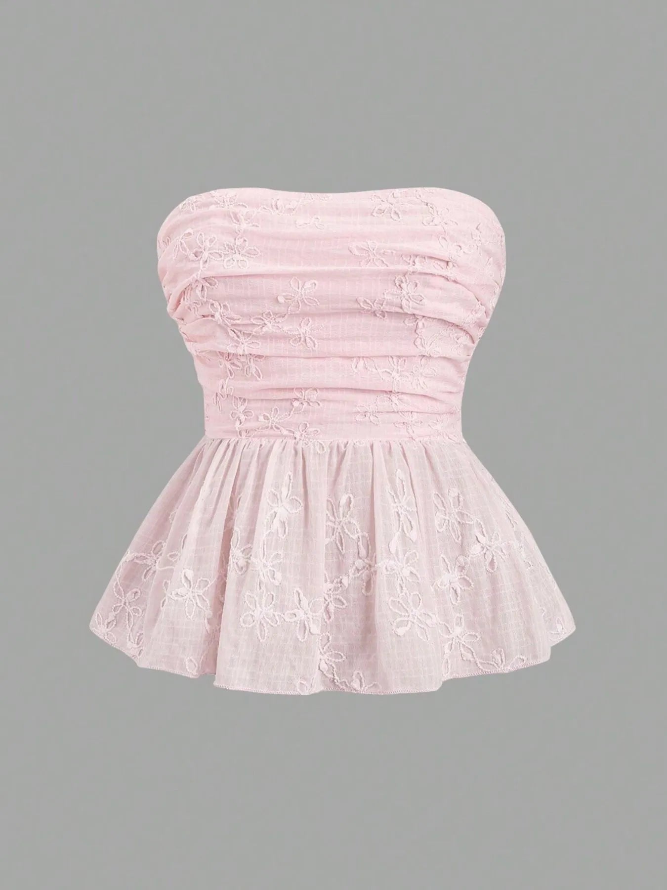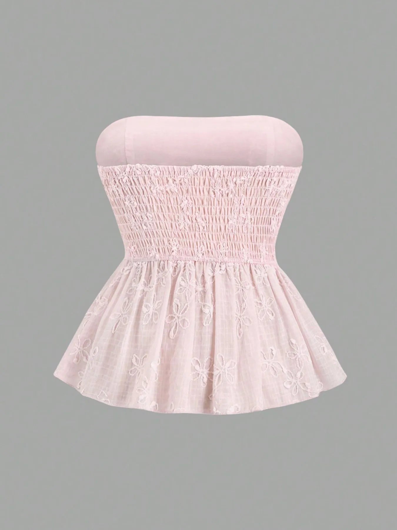 Features:Embroidered,Ruched,Peplum,Smocked Stretch:No stretch Material composition:95% polyester, 5% spandex Care instructions:Machine wash cold. Tumble dry low. Imported Product Measurements (Measurements by... Read more