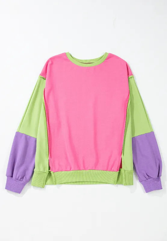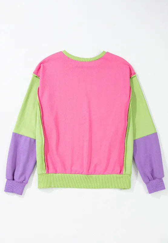 Exposed Seam Color Block Long Sleeve Sweatshirt