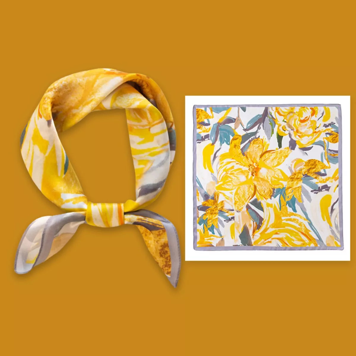 Floral Print Silk Square Scarf