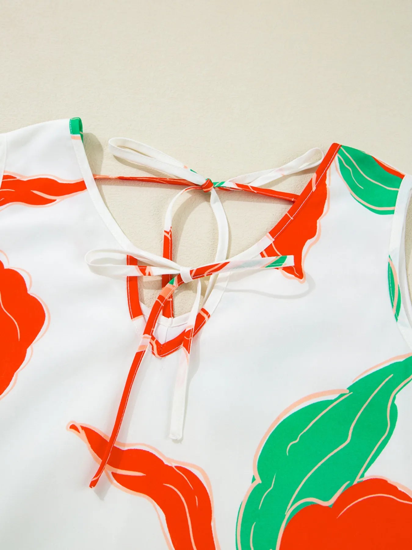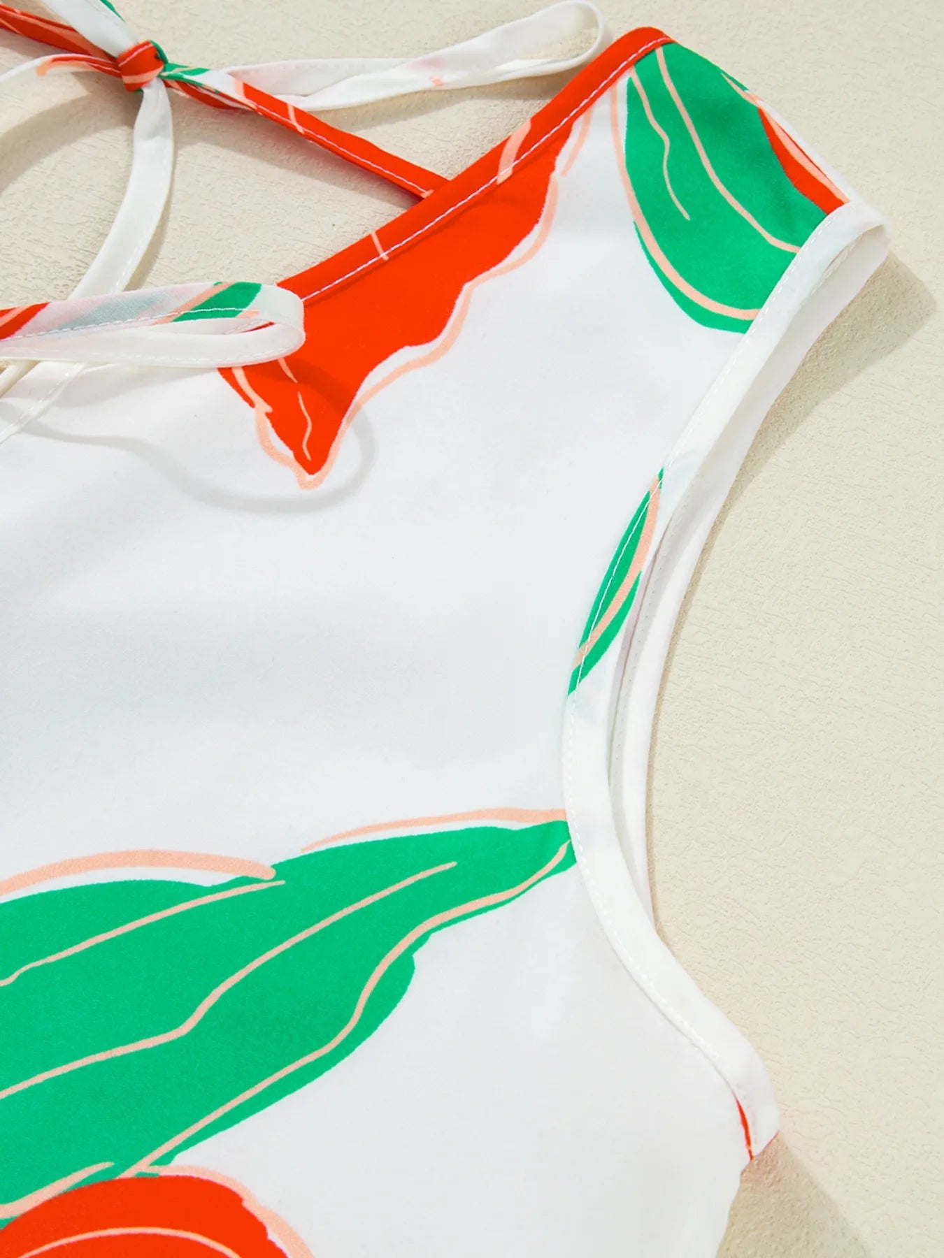 Floral Tie Neck Sleeveless Ruffled Sundress