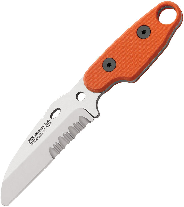 5.75" (14.61cm) overall. 3" (7.62cm) satin finish partially serrated Bohler N690 stainless blade. Orange G10 handle. Full tang. Lanyard hole.... Read more