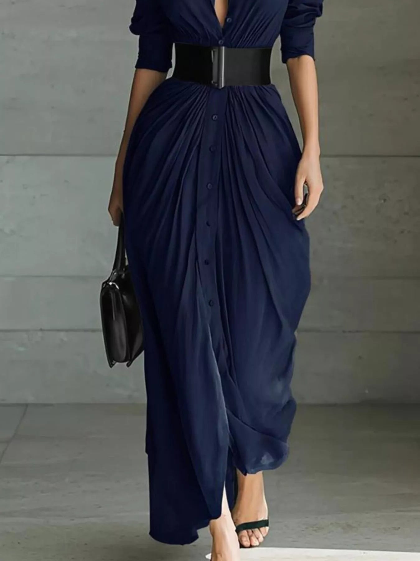 Full Size Button Front Ruched Shirt Maxi Dress Plus Size
