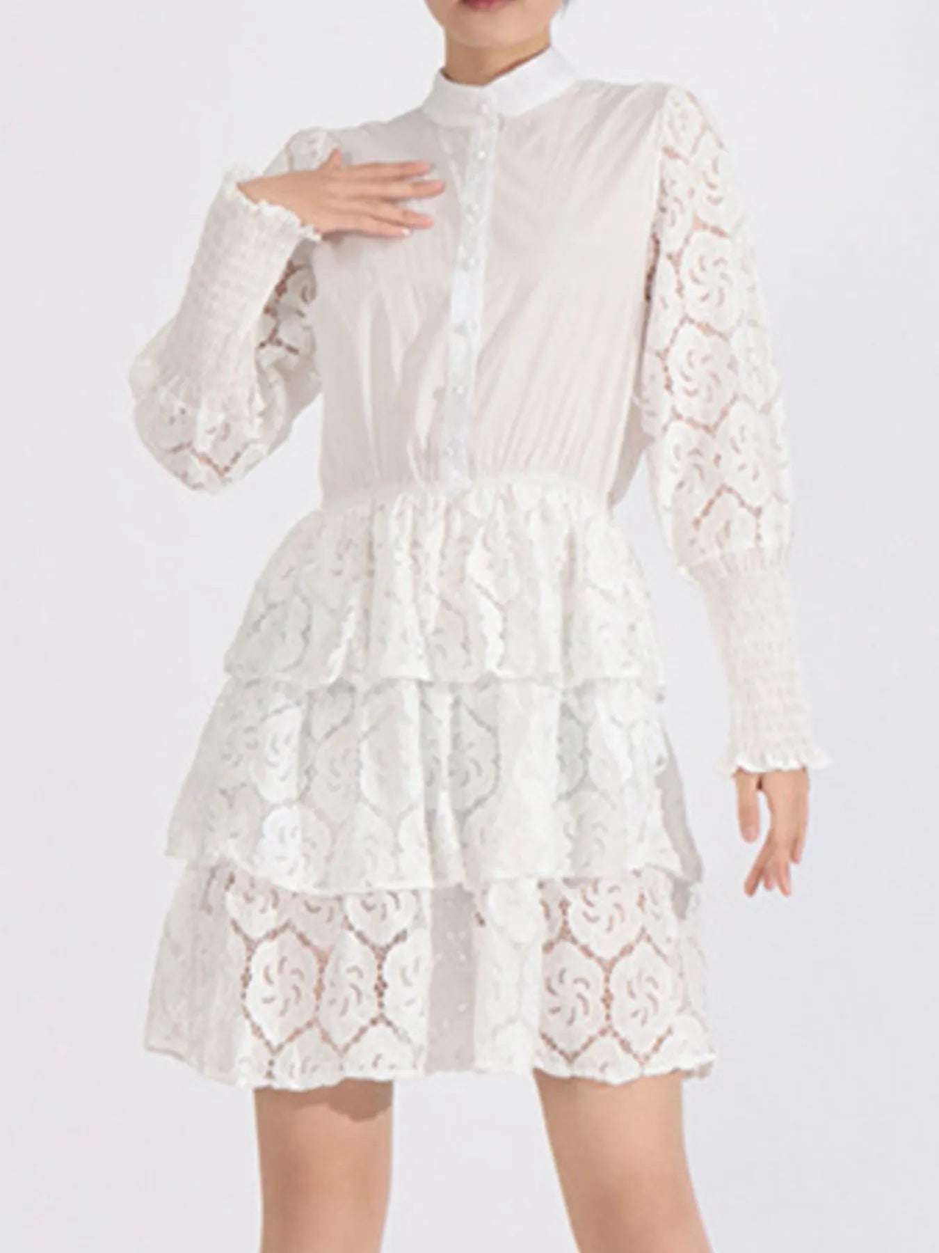 Features:Buttoned,Tiered,Lace Detail Stretch:No stretch Body:Not lined Material composition:95%cotton,5%spandex Care instructions:Machine wash cold. Tumble dry low. Imported Product Measurements (Measurements by... Read more