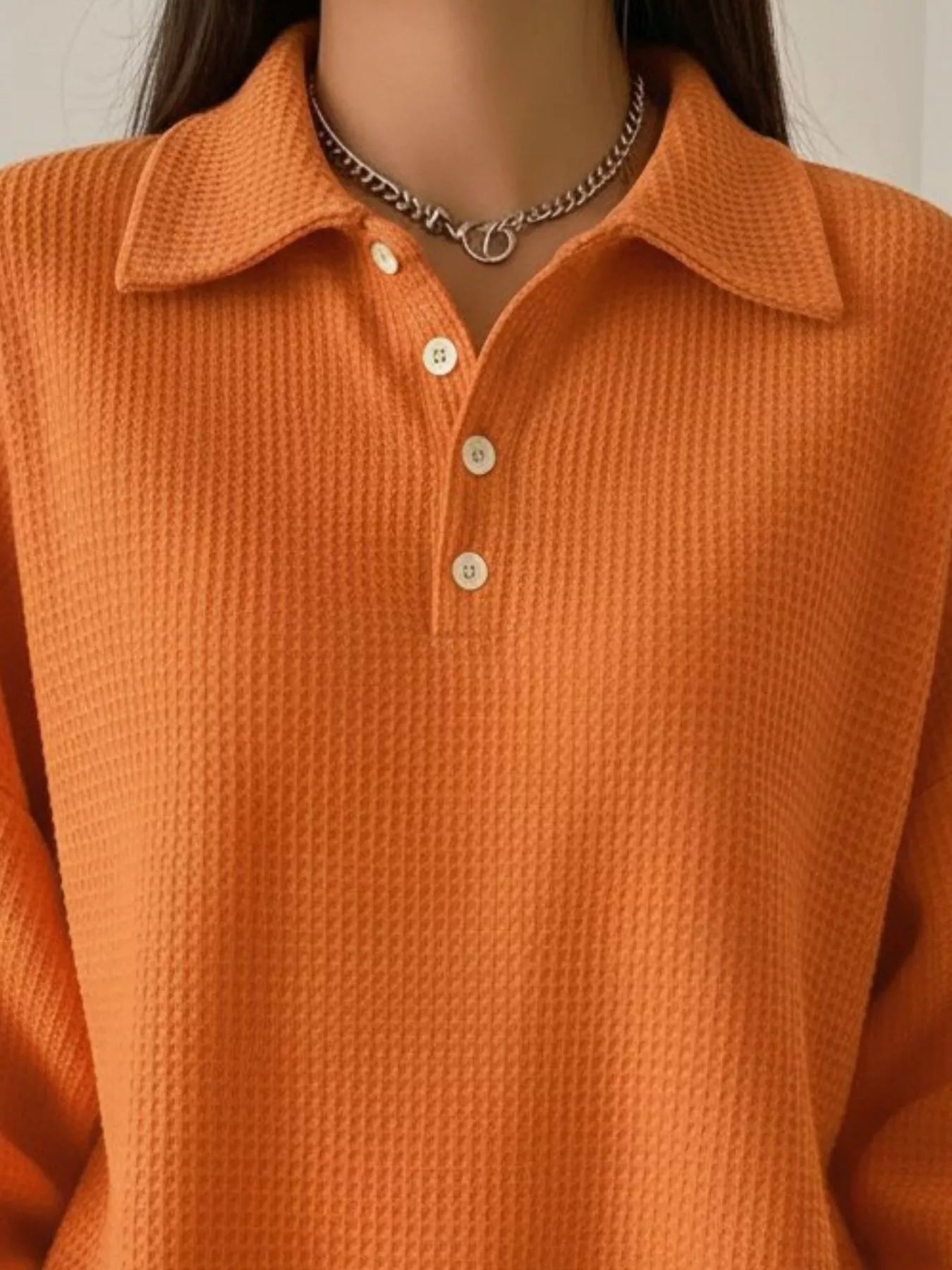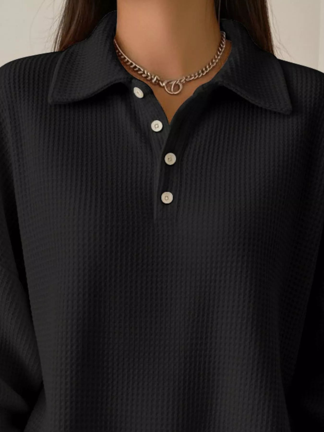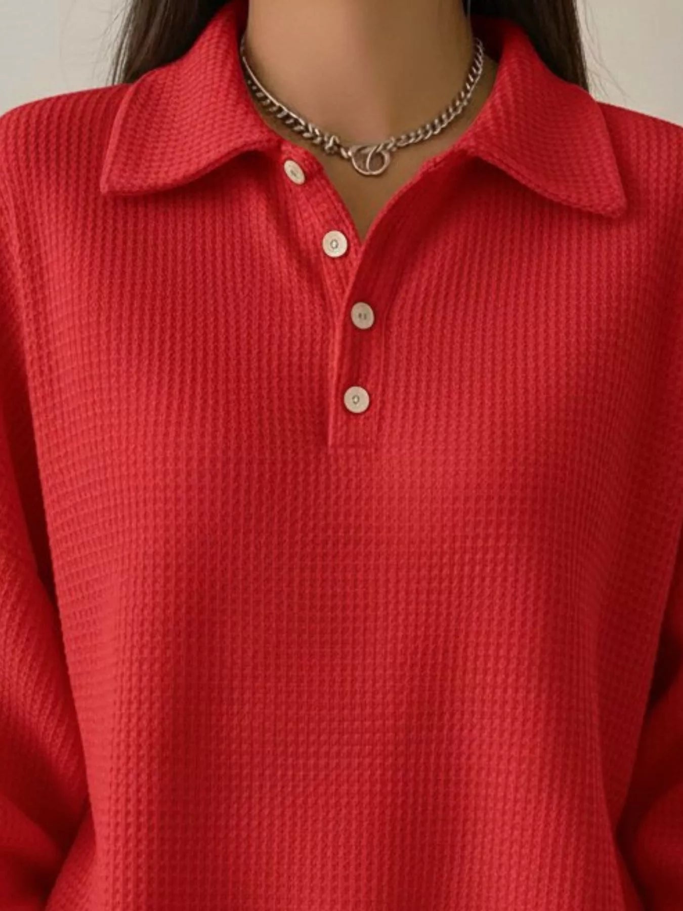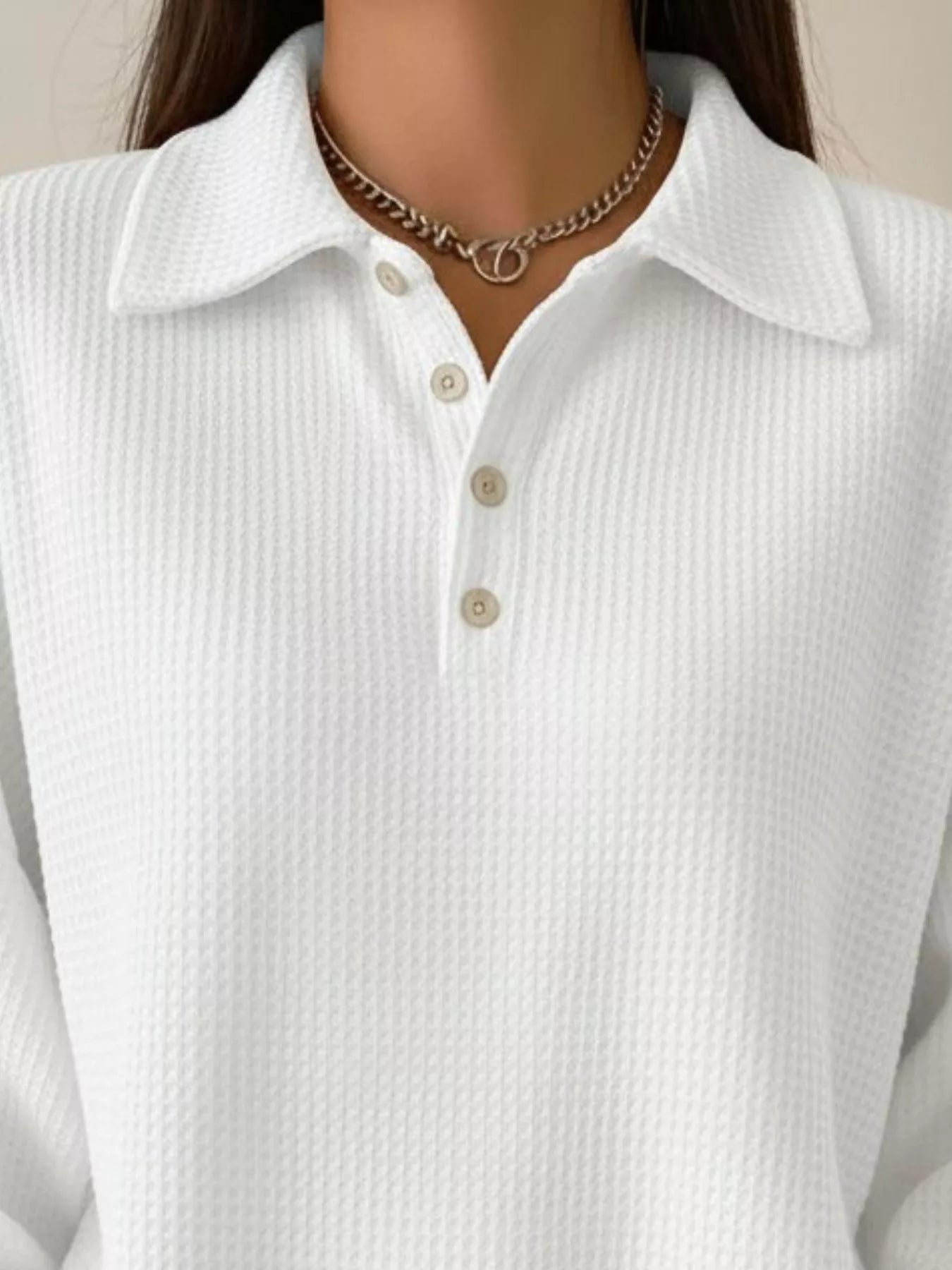 Full Size Waffle Knit Button Detail Top Plus Size