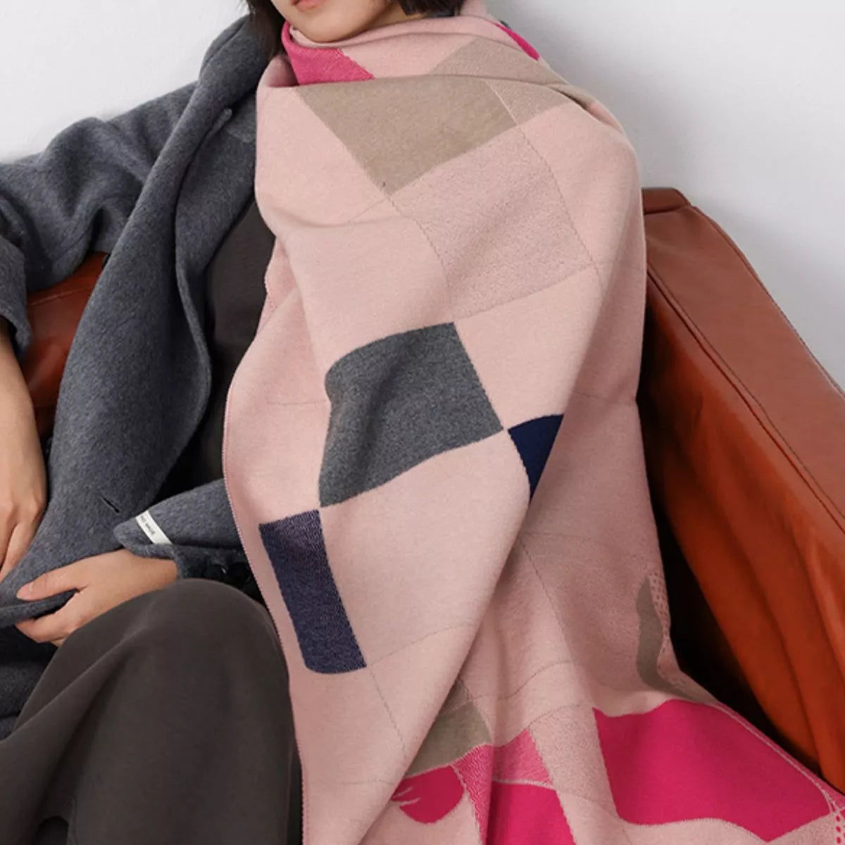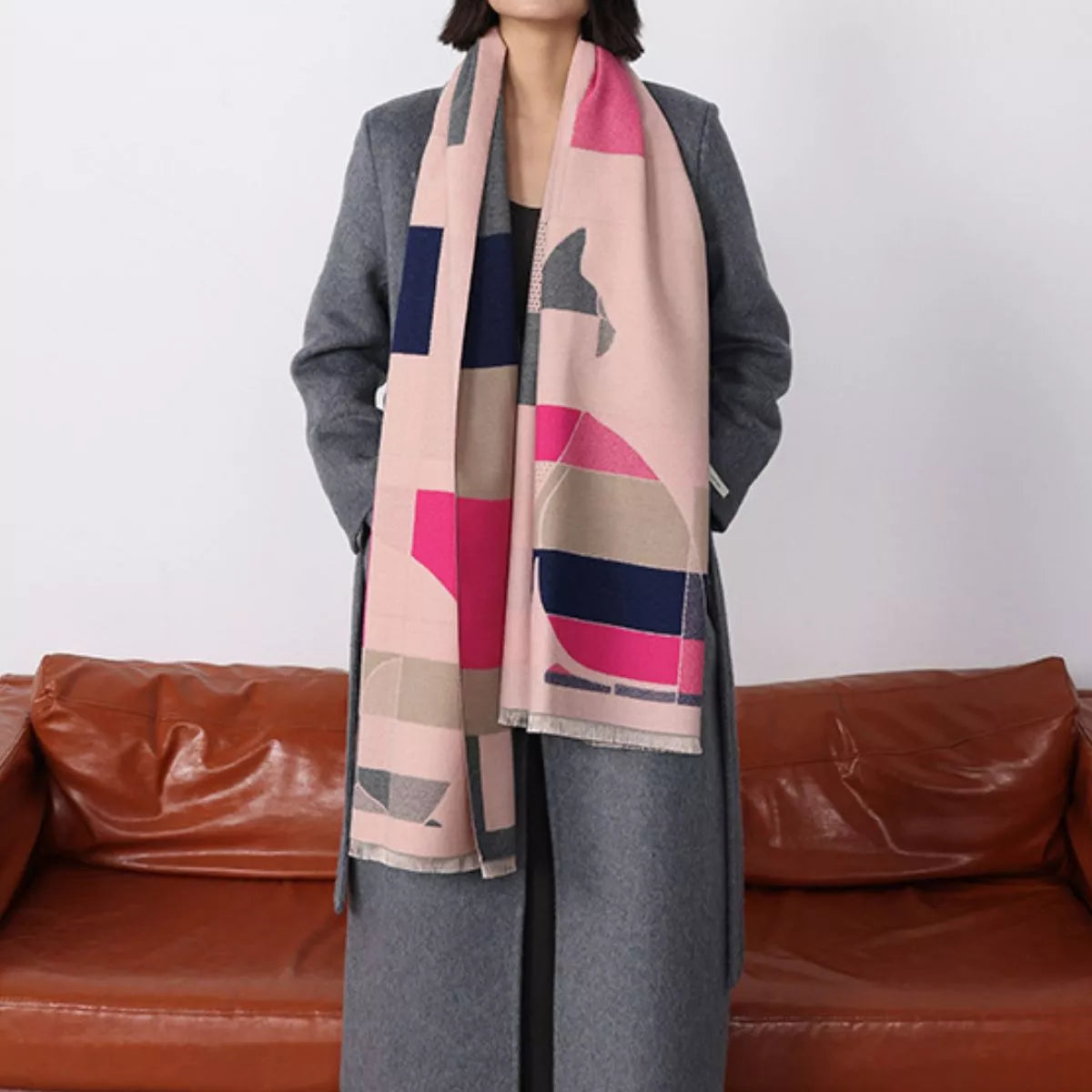 Geometric Cat Print Soft Scarf