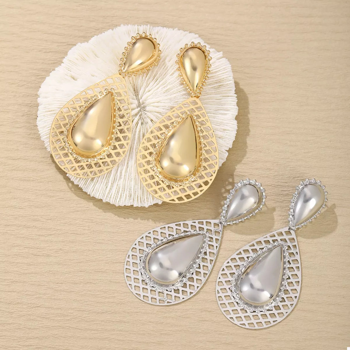 Hollowed-Out Teardrop Statement Earrings