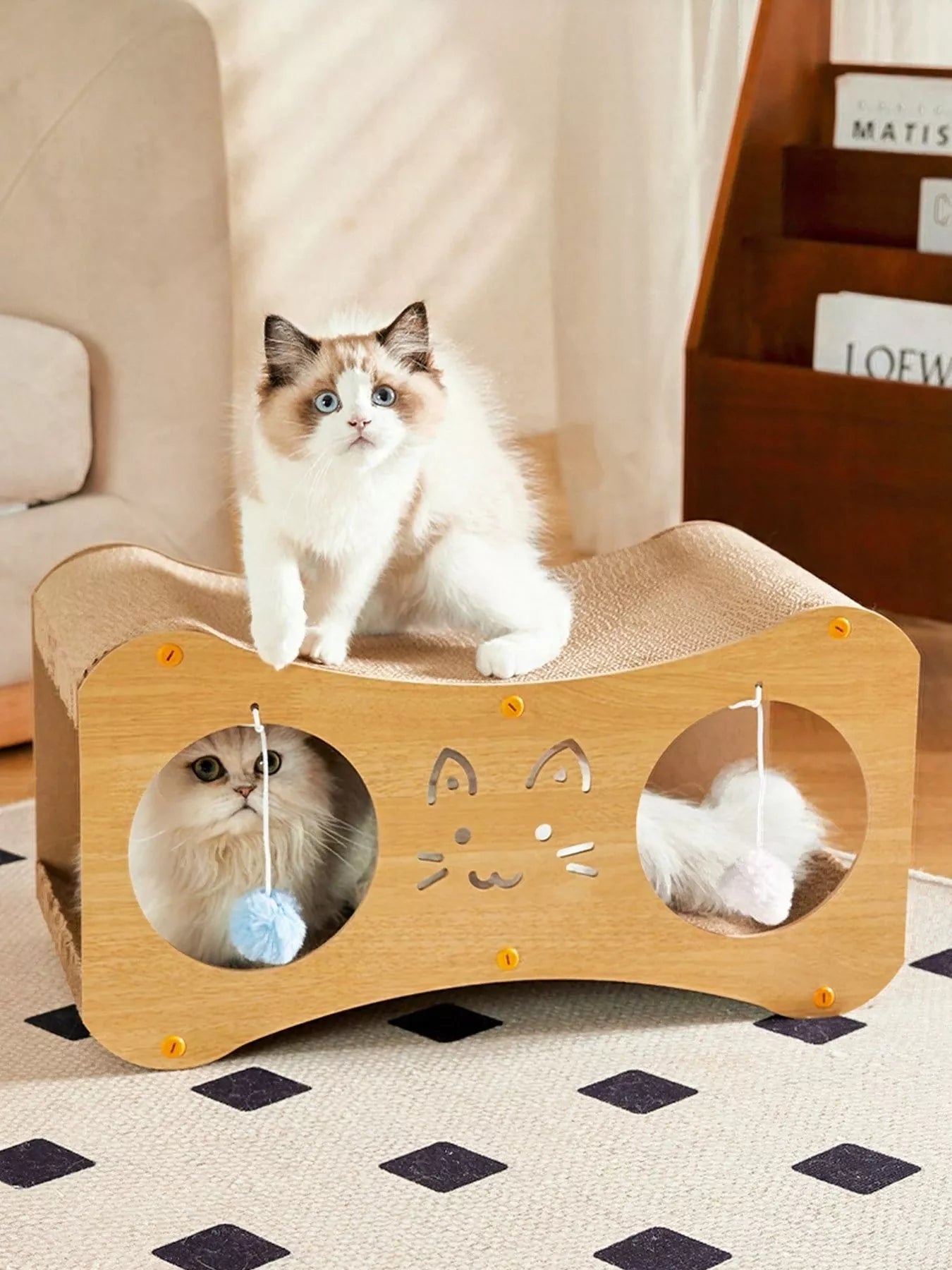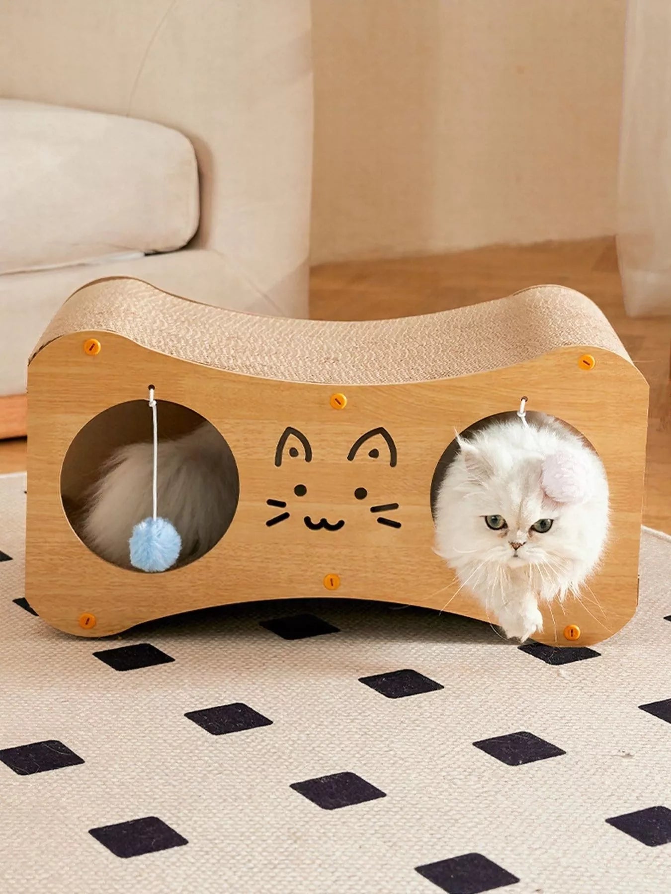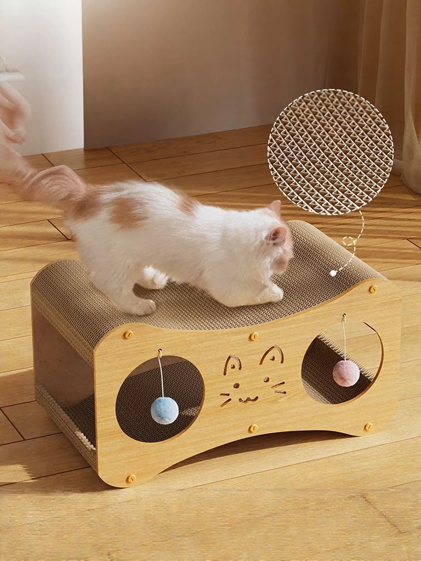 Interactive Cat Scratcher Lounge Bed with Toy Balls