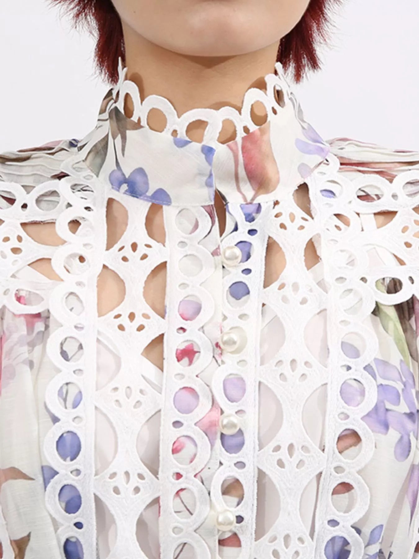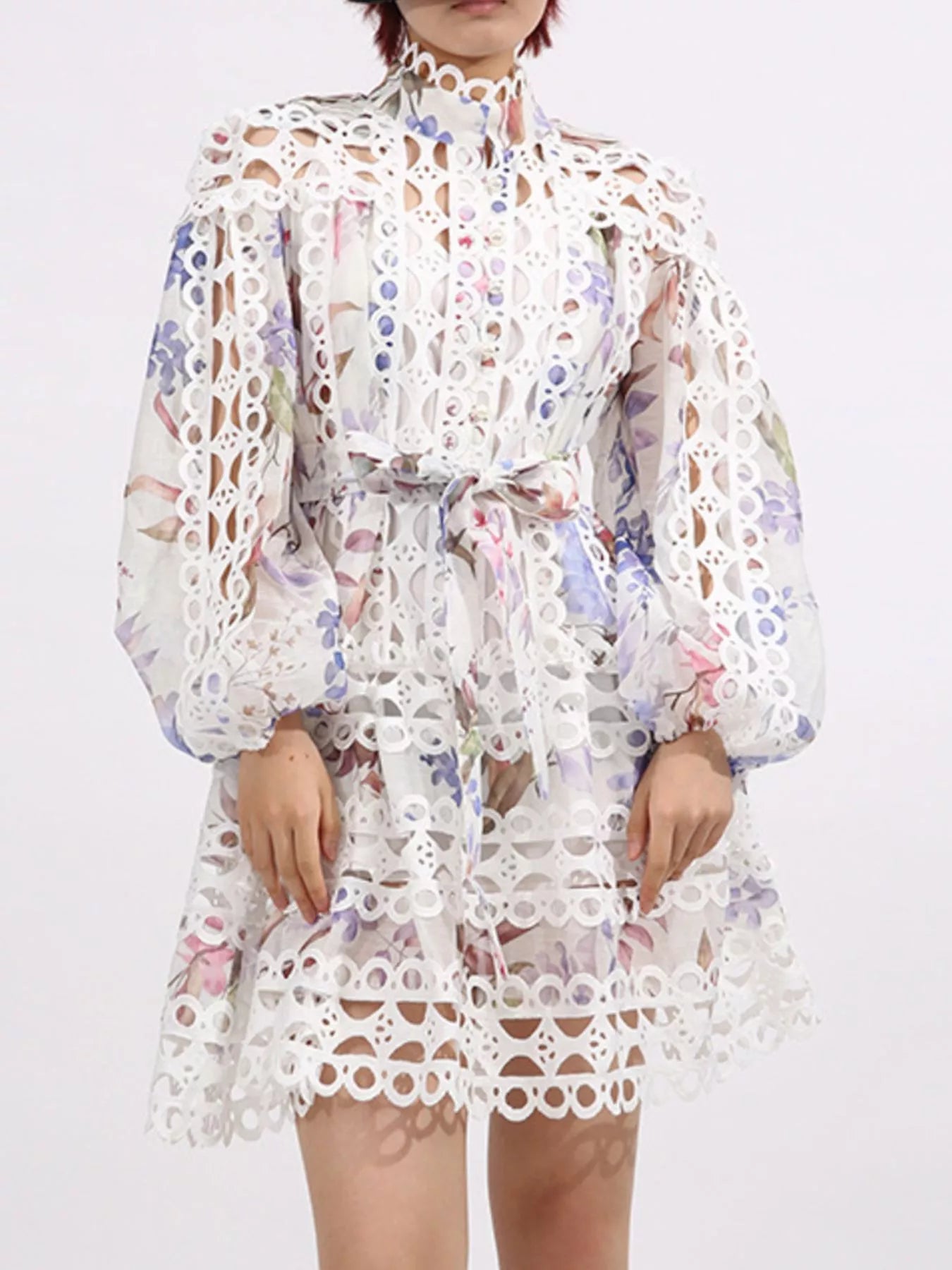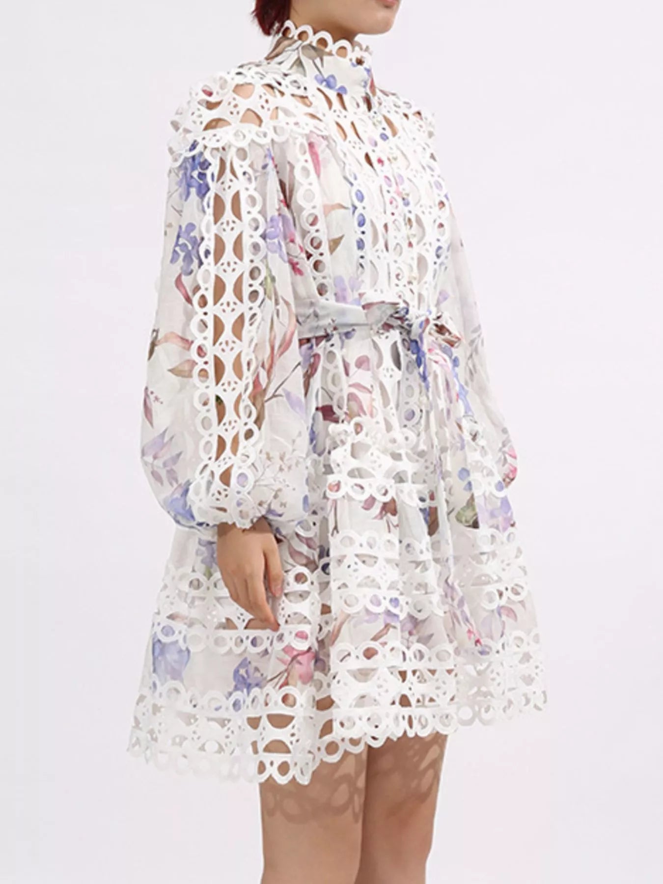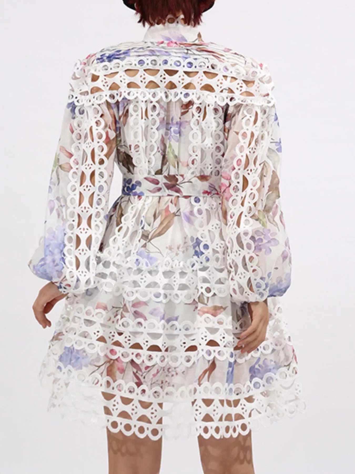 Lace Eyelet Mini Dress with Balloon Sleeves