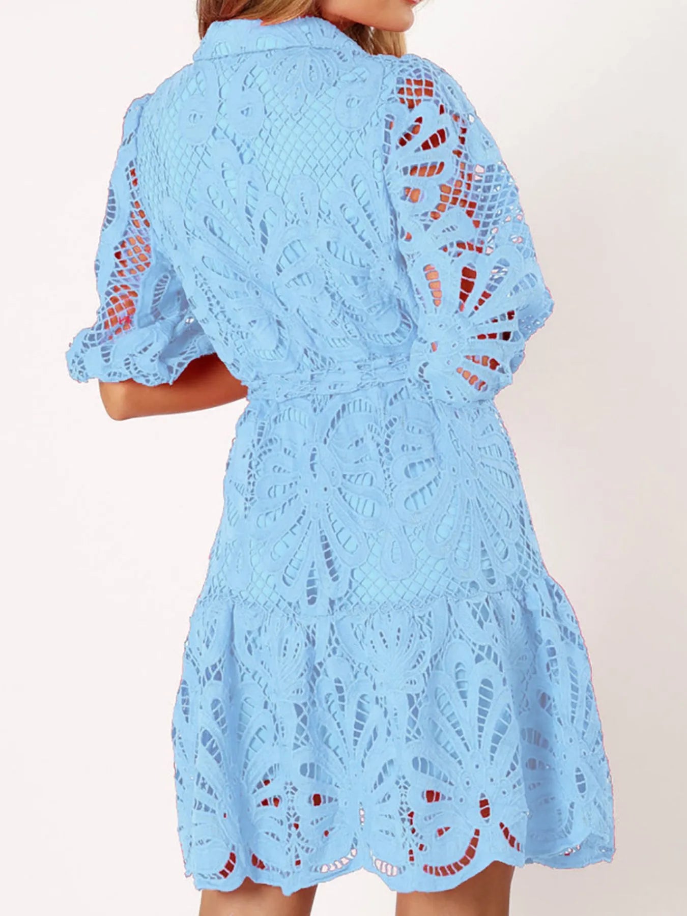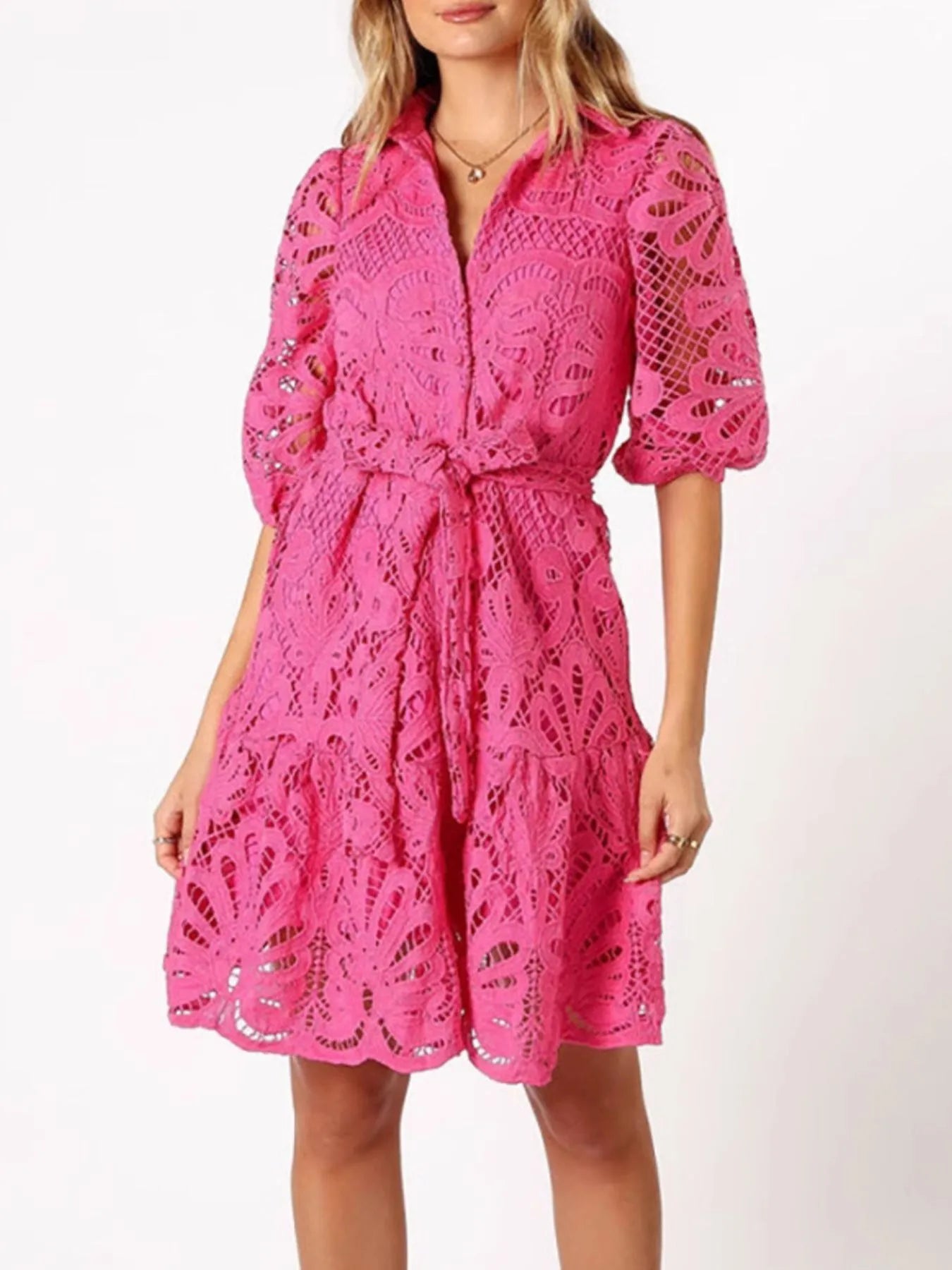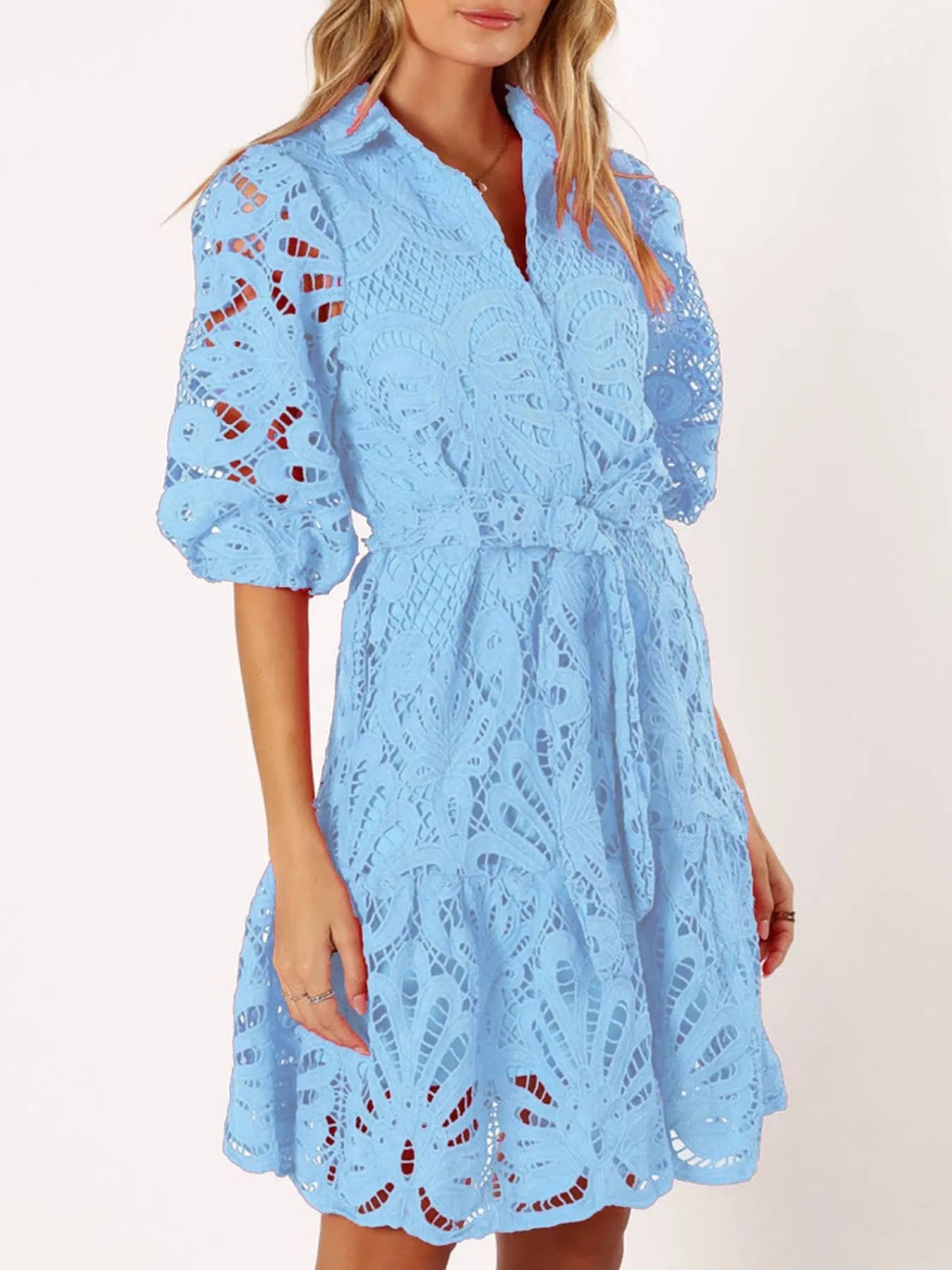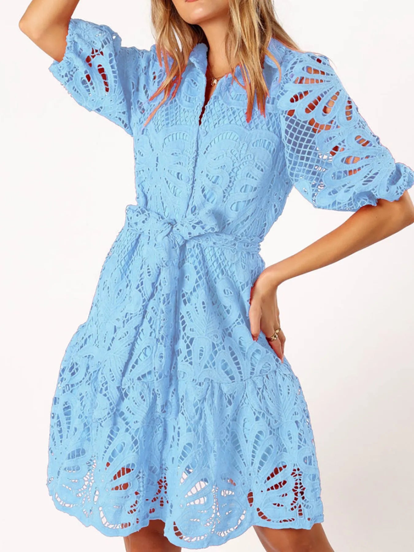 Lace Tie Waist Half Sleeve Dress