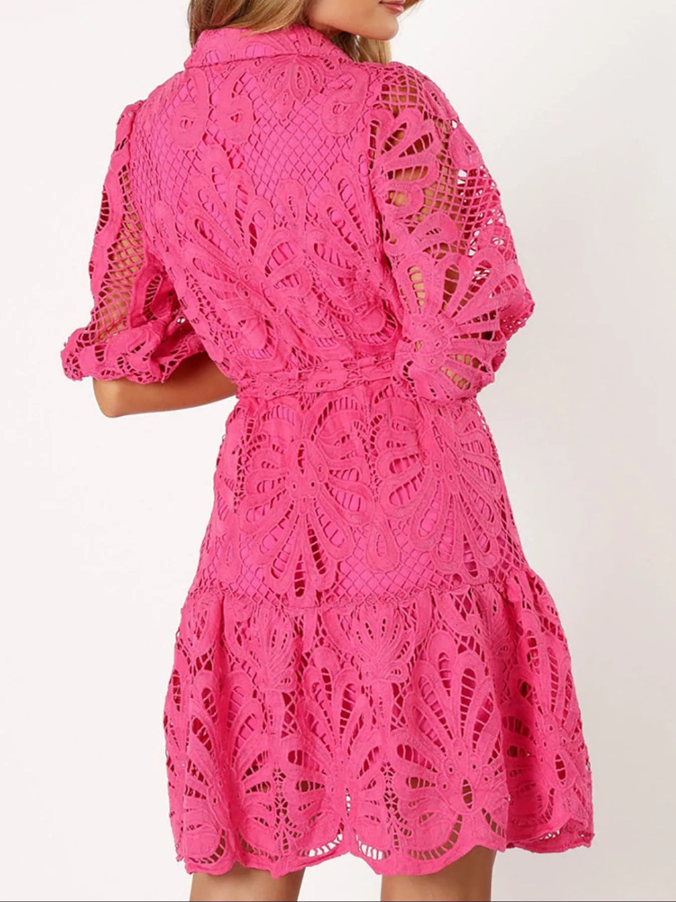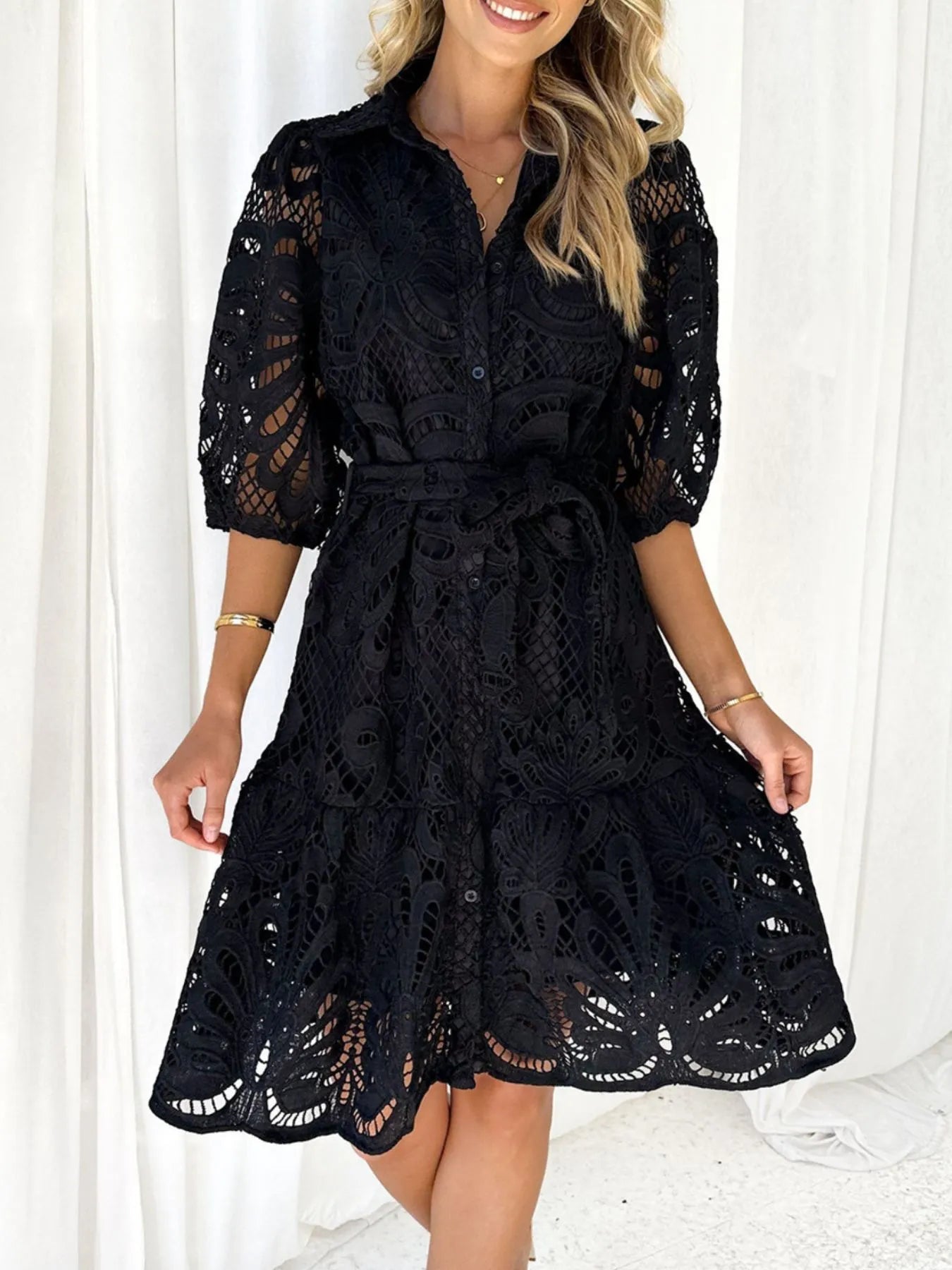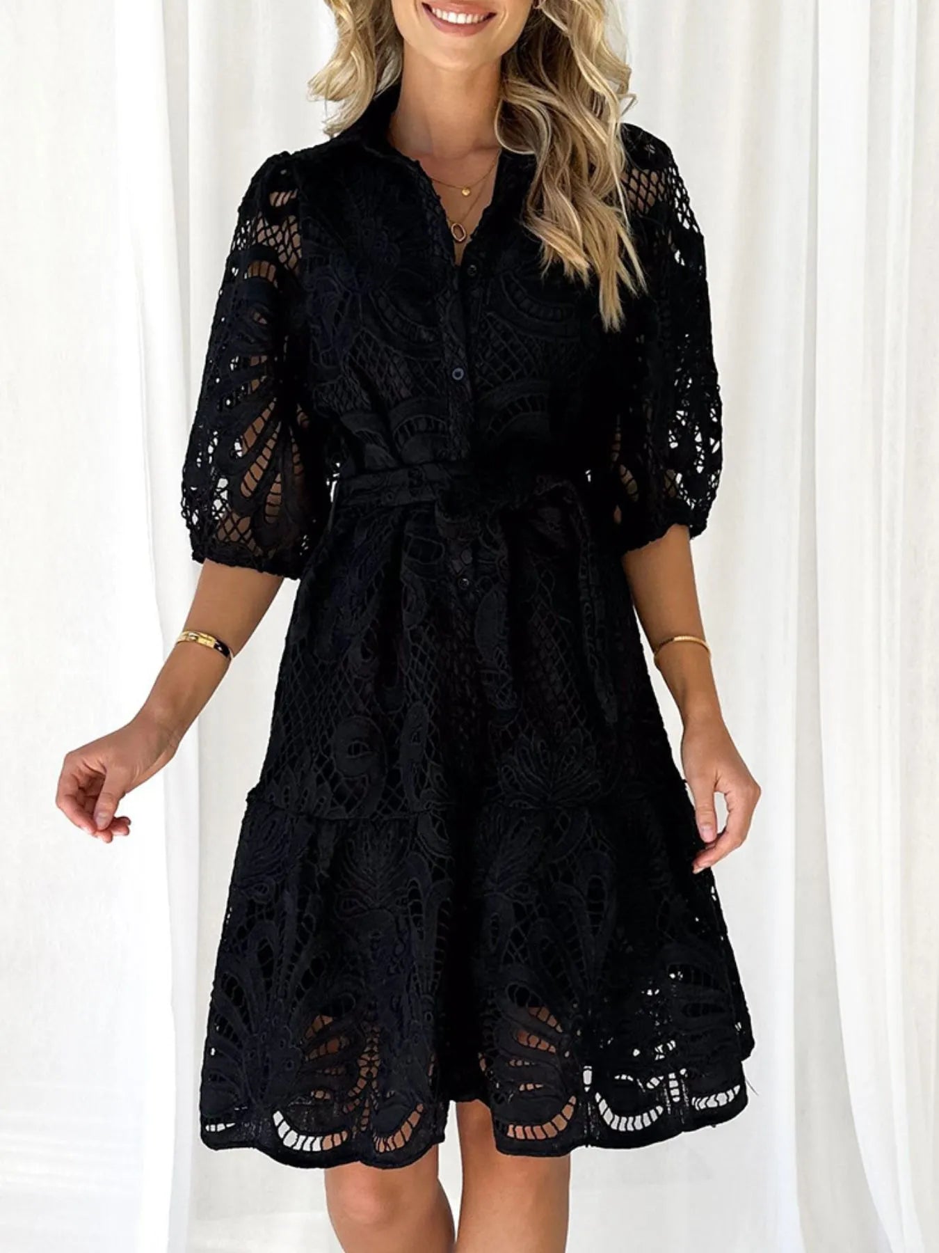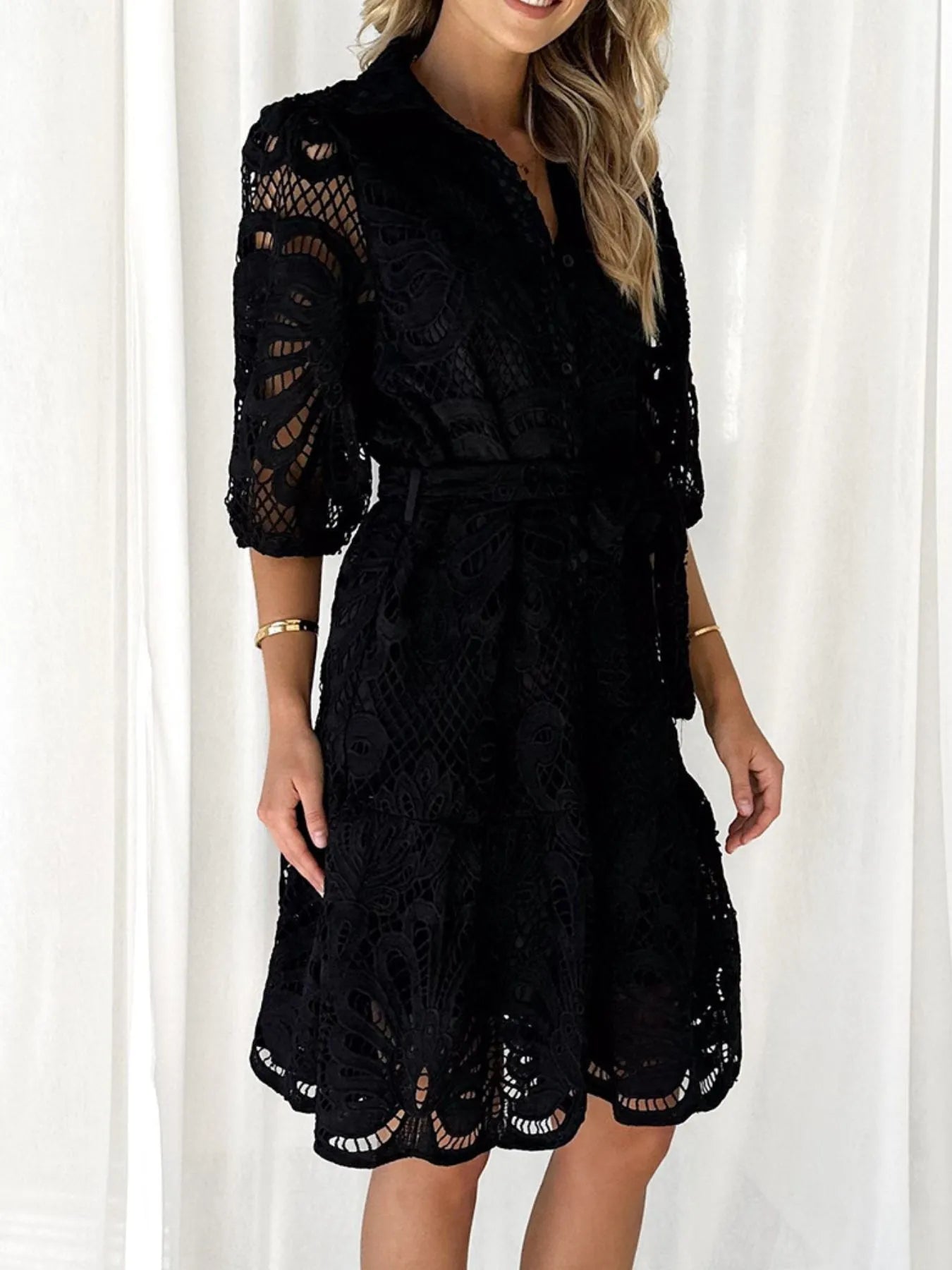 Lace Tie Waist Half Sleeve Dress