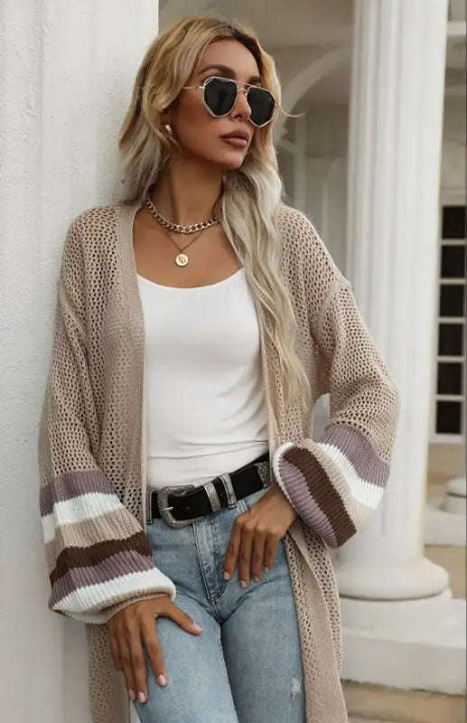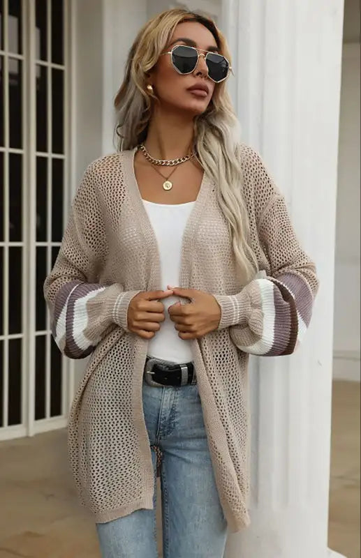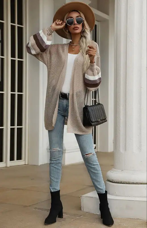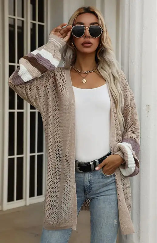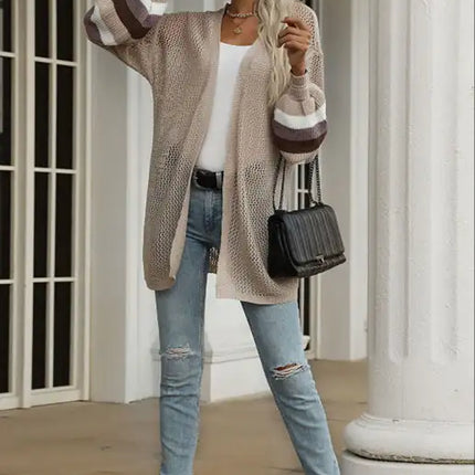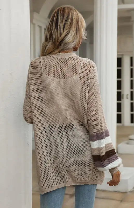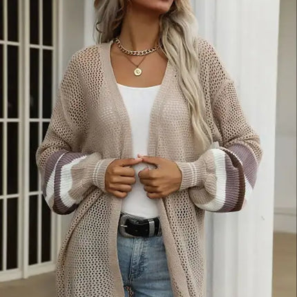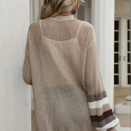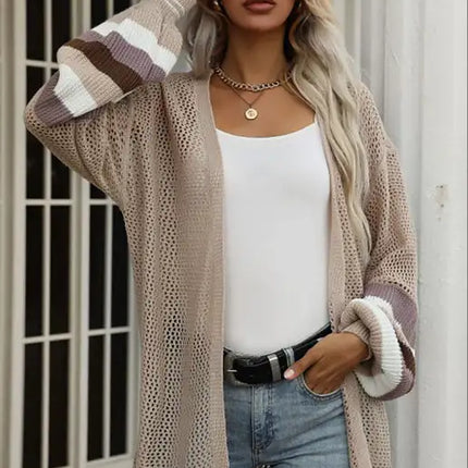 Ladies Colorblock Loose Cutout Sweater Jacket
