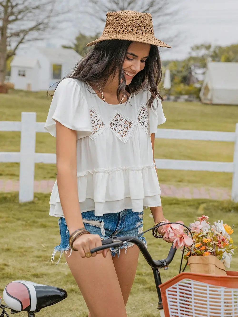 Layered Round Neck Flutter Sleeve Blouse