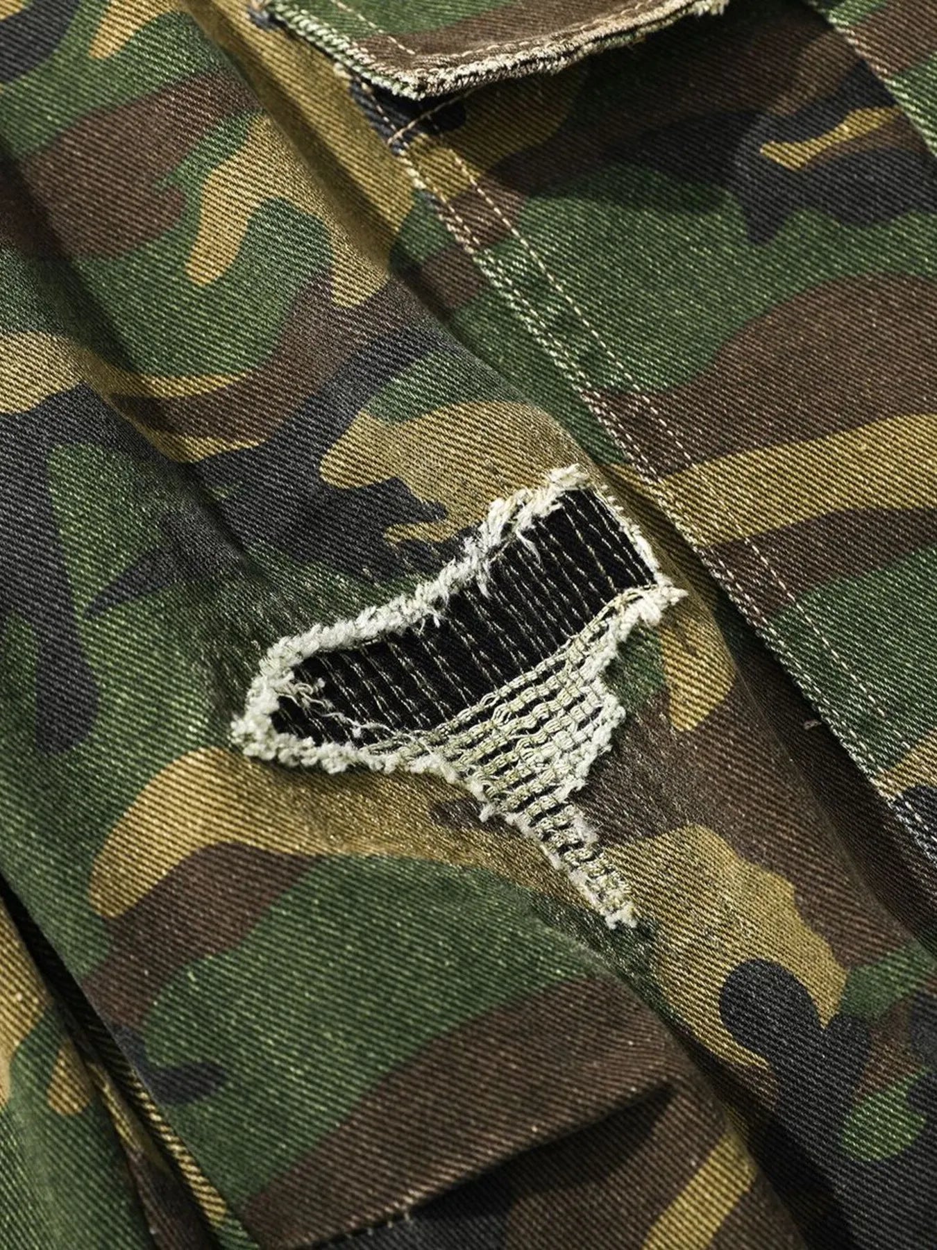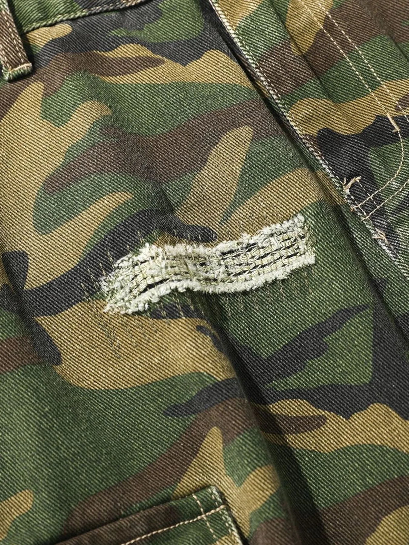 Men's Distressed Camouflage Cargo Shorts