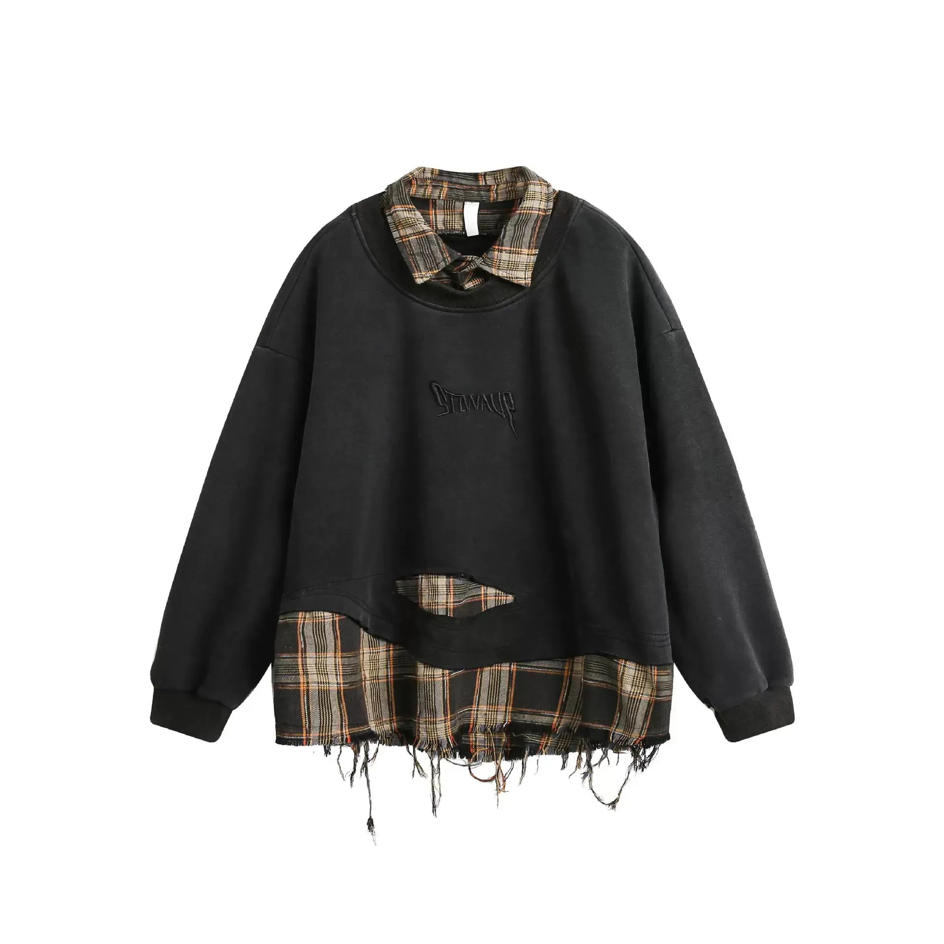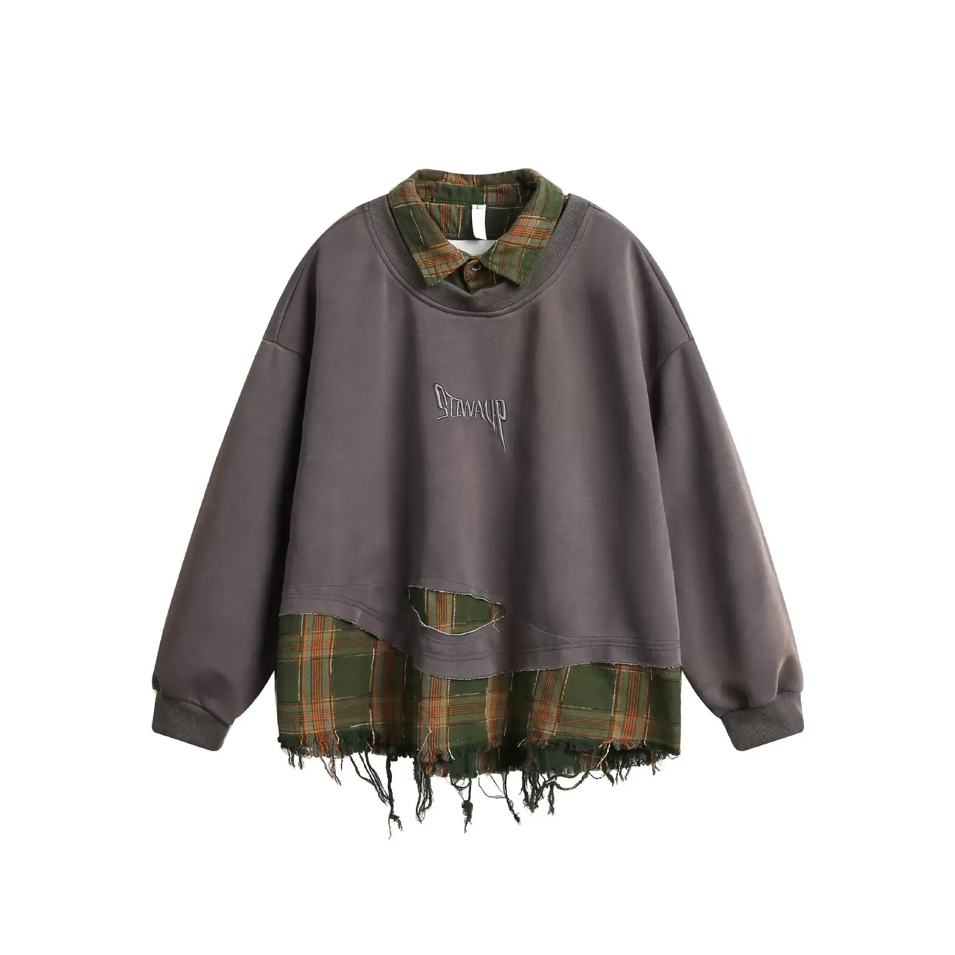 Features:Oversized,Distressed,Contrast Stitching,Pocketed Stretch:Slightly stretchy Material composition:70% cotton, 30% polyester Care instructions:Machine wash cold. Tumble dry low. Imported Product Measurements (Measurements... Read more