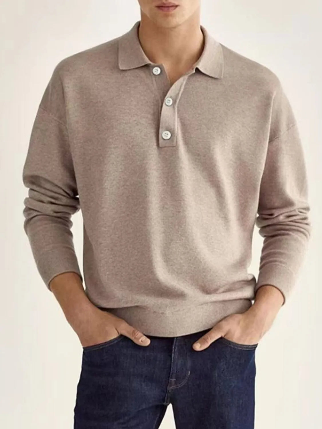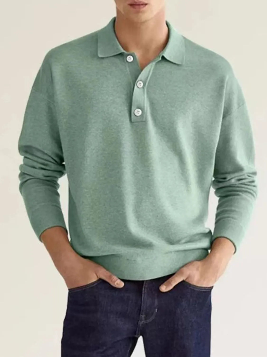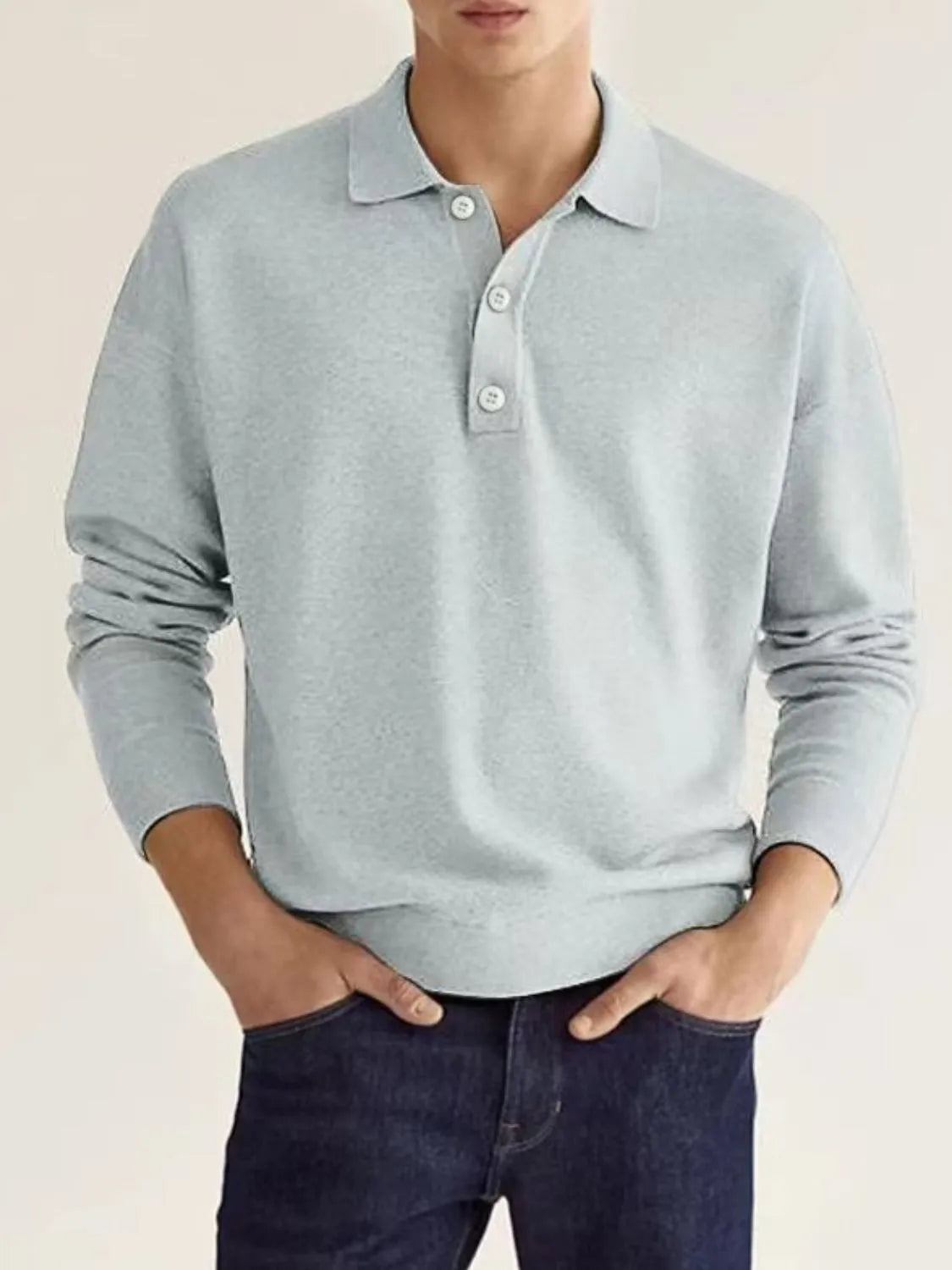 Men's Full Size Button Detail Long Sleeve Polo Plus Size