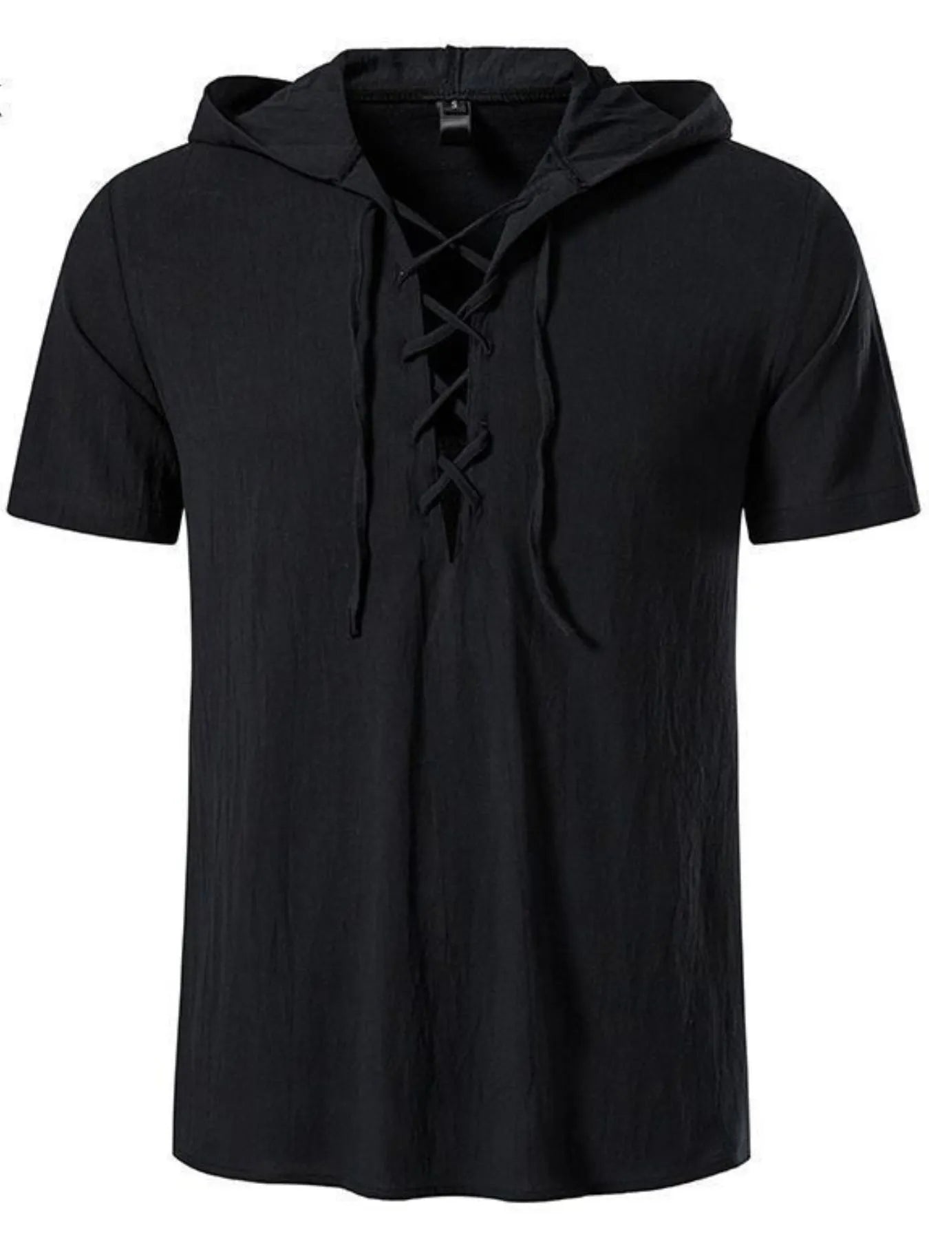 Men's Full Size Casual Lace-Up Hooded Top Plus Size
