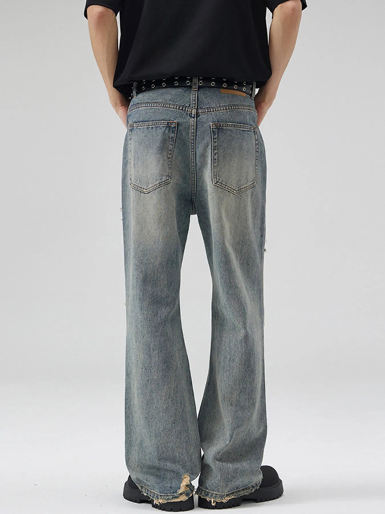 Men's Full Size Distressed Wide Leg Jeans Plus Size