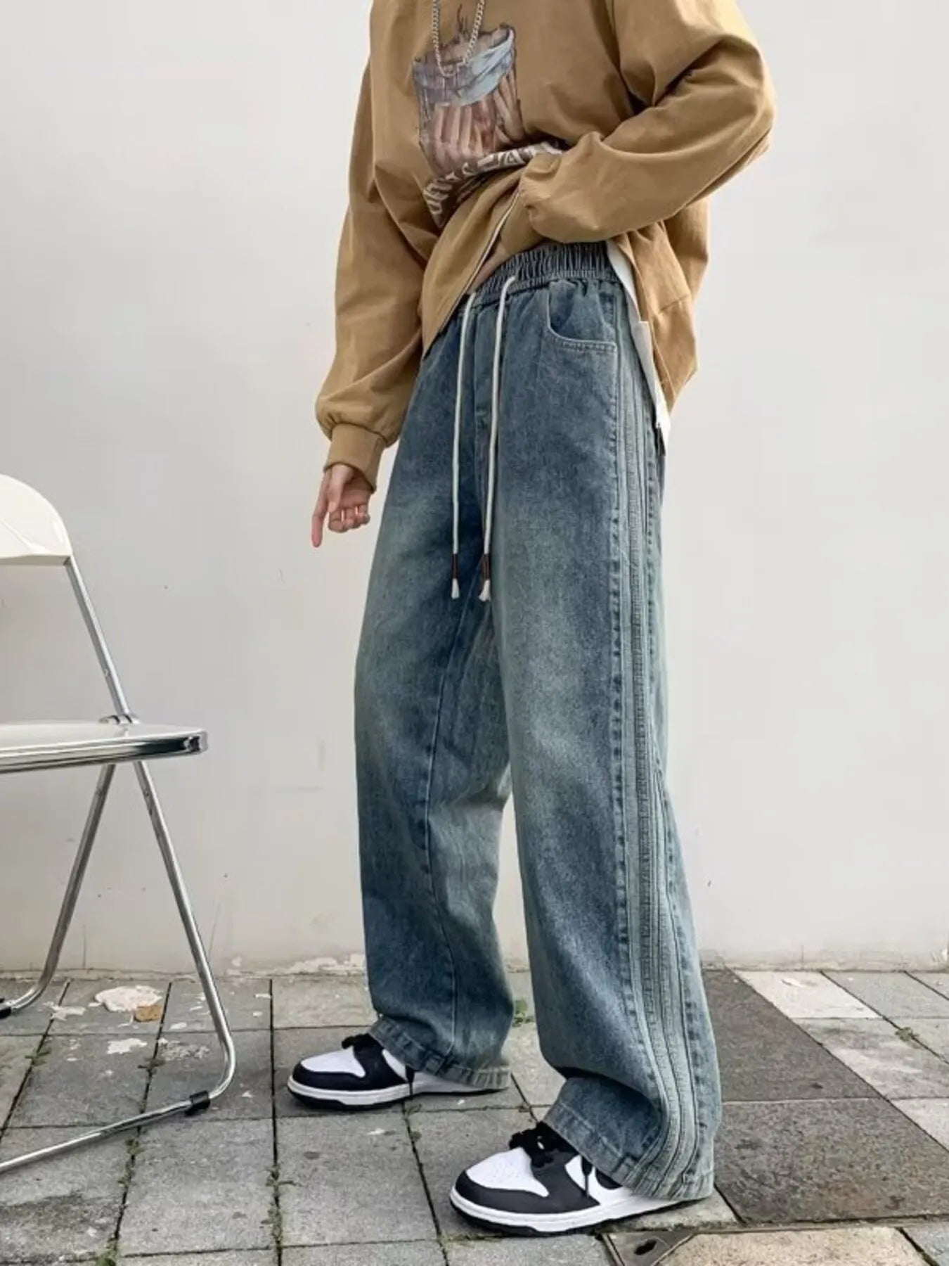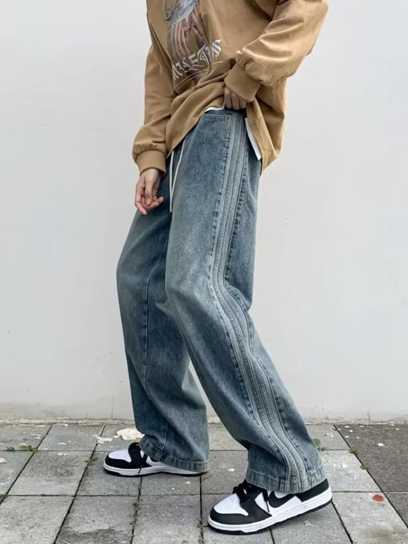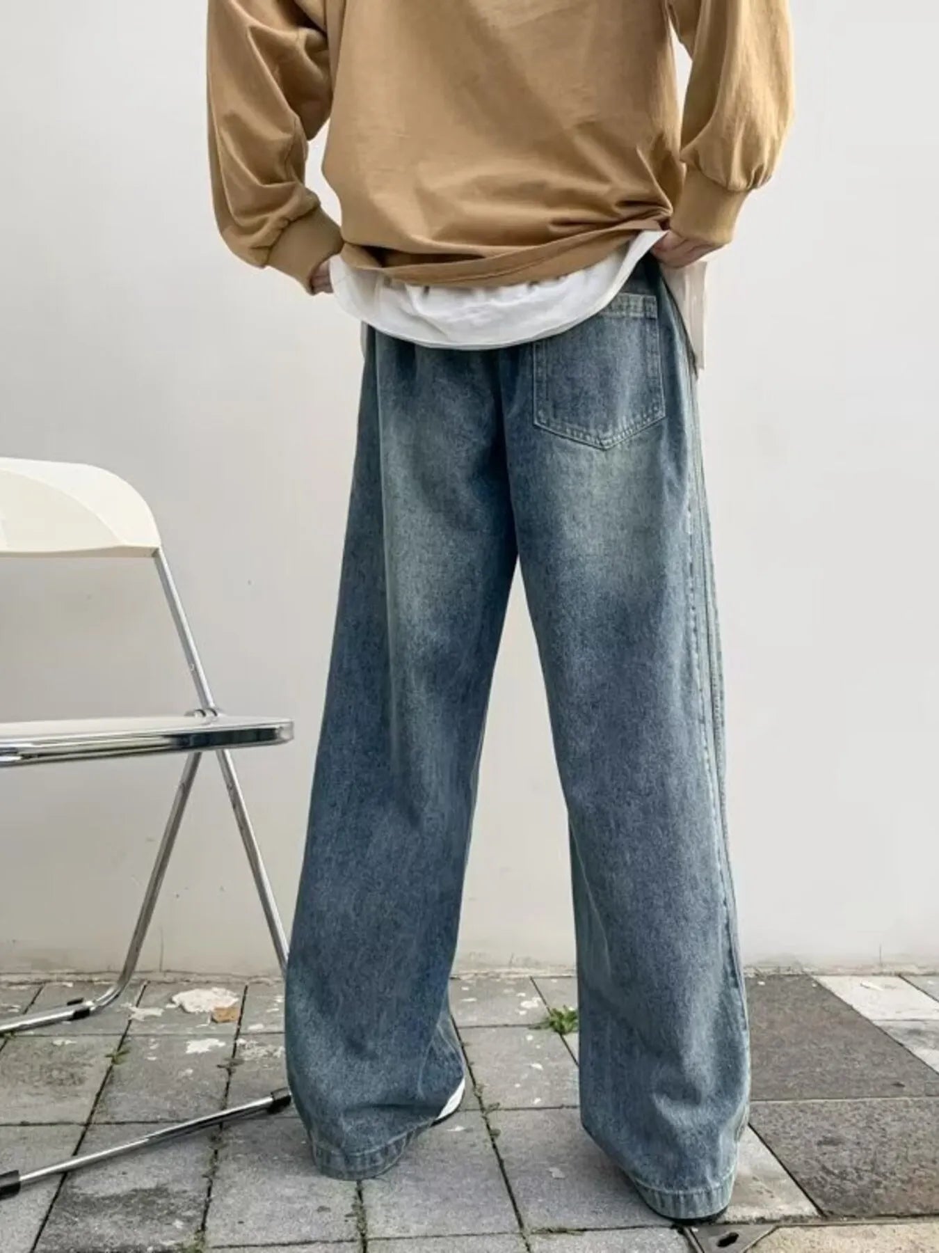 Men's Full Size Vintage Wash Wide Leg Jeans Plus Size