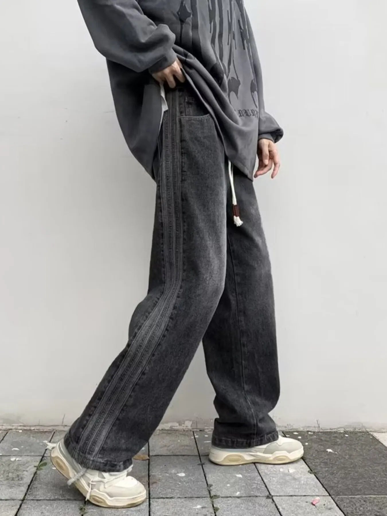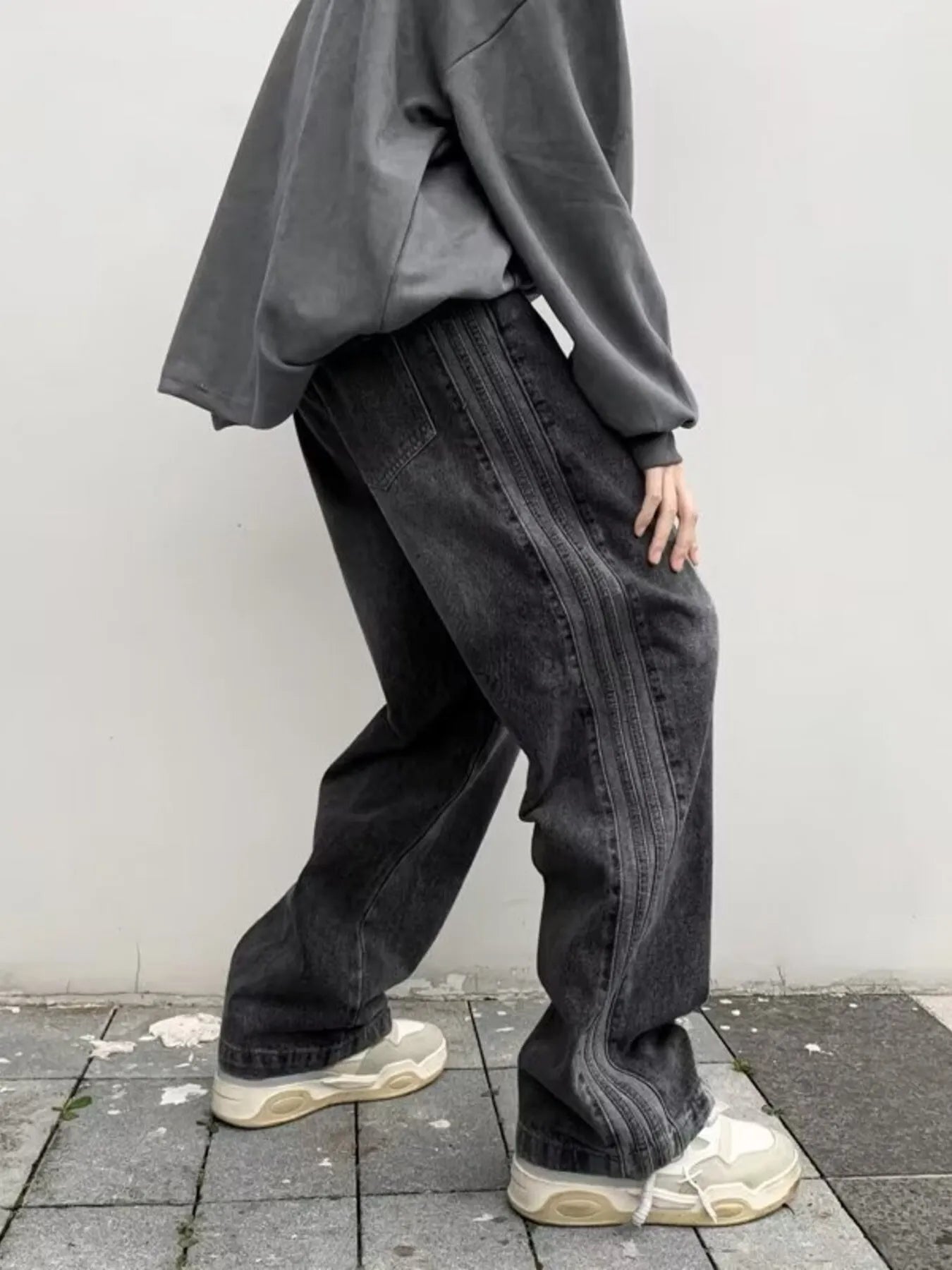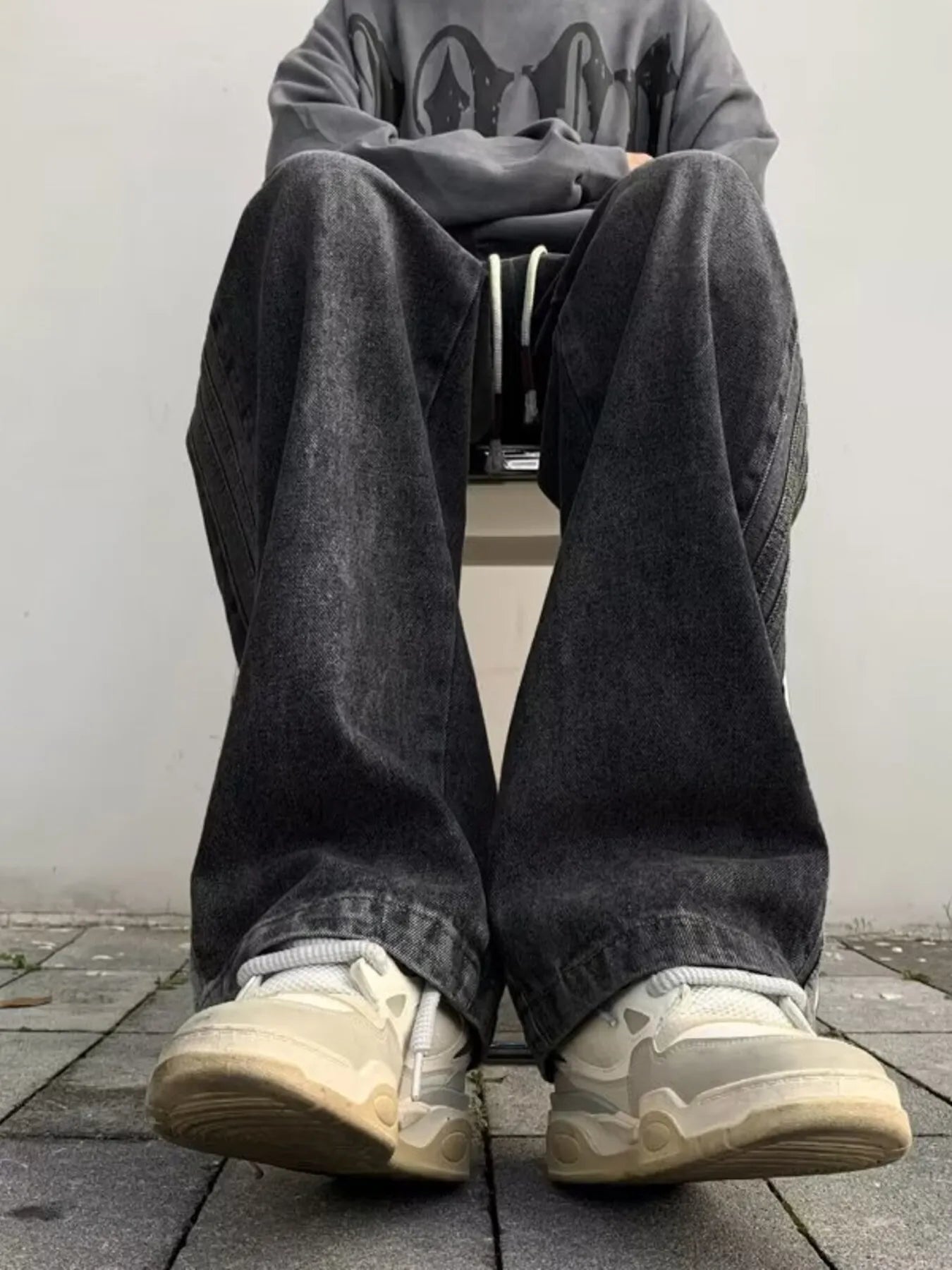 Men's Full Size Vintage Wash Wide Leg Jeans Plus Size