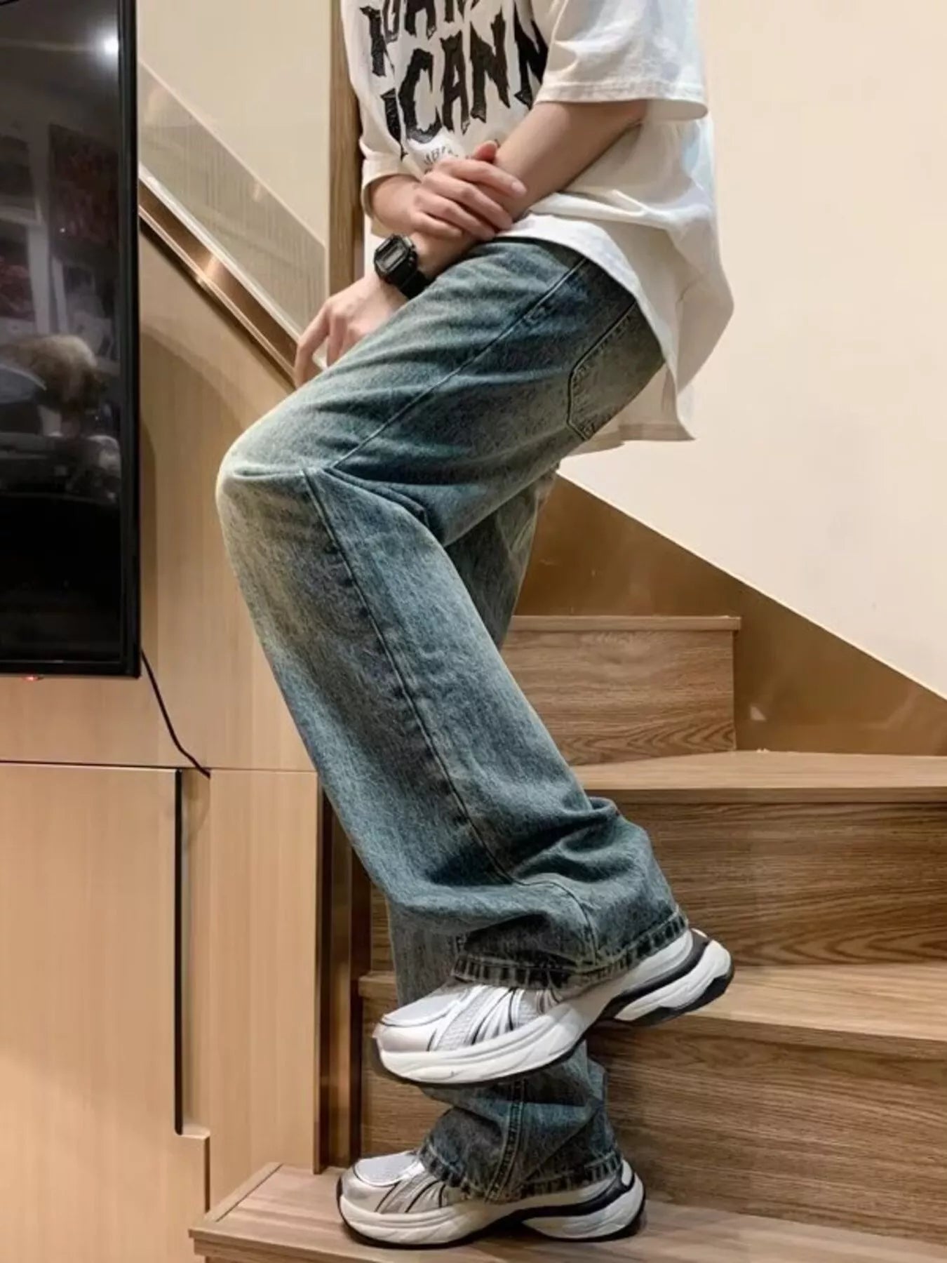 Men's Full Size Wash Loose Fit Jeans Plus Size