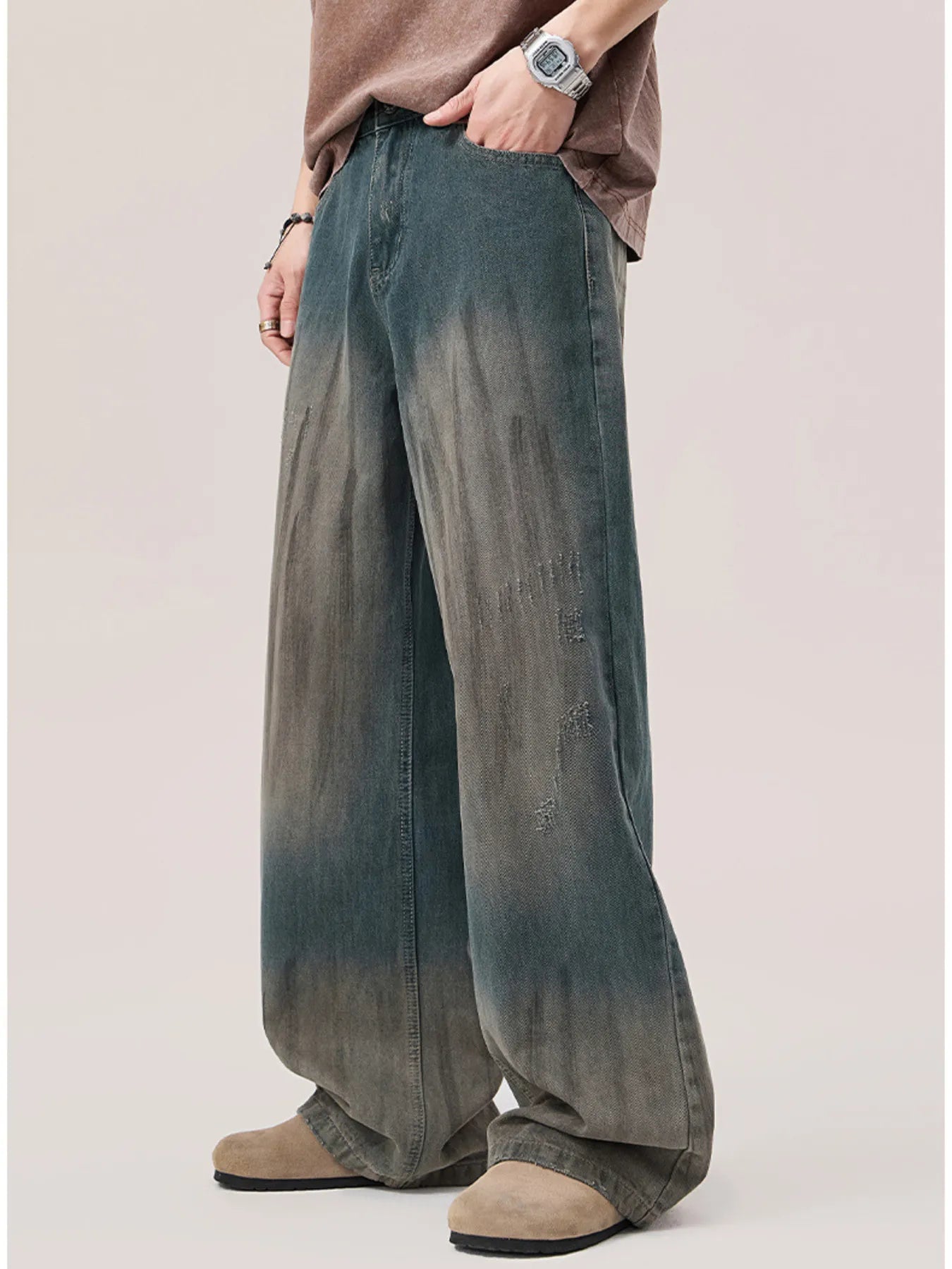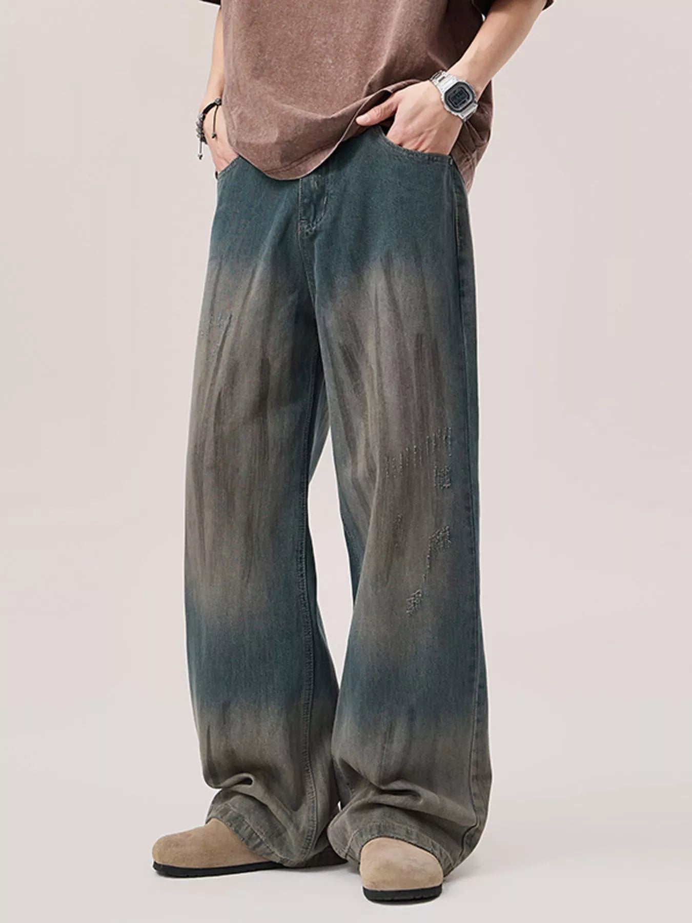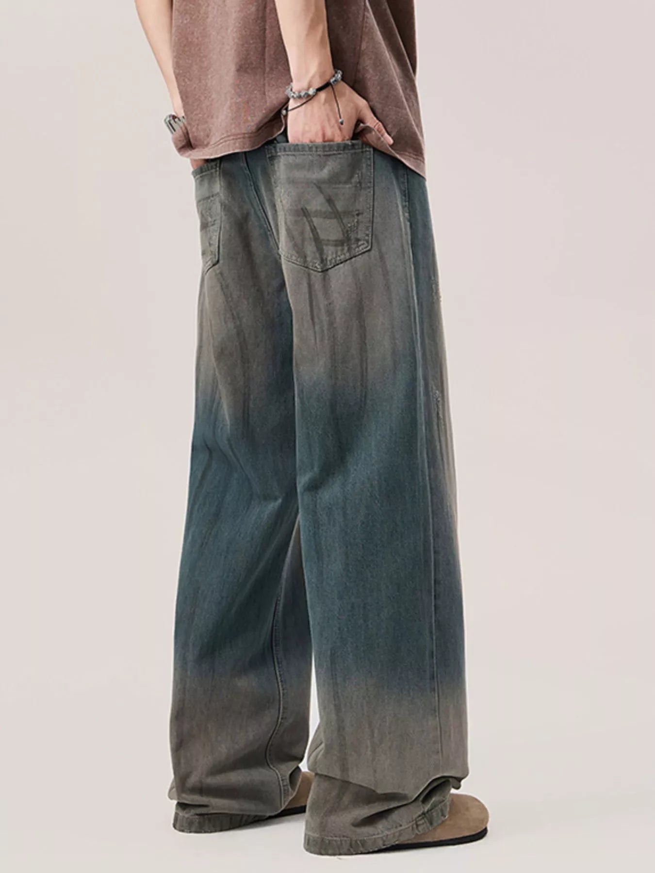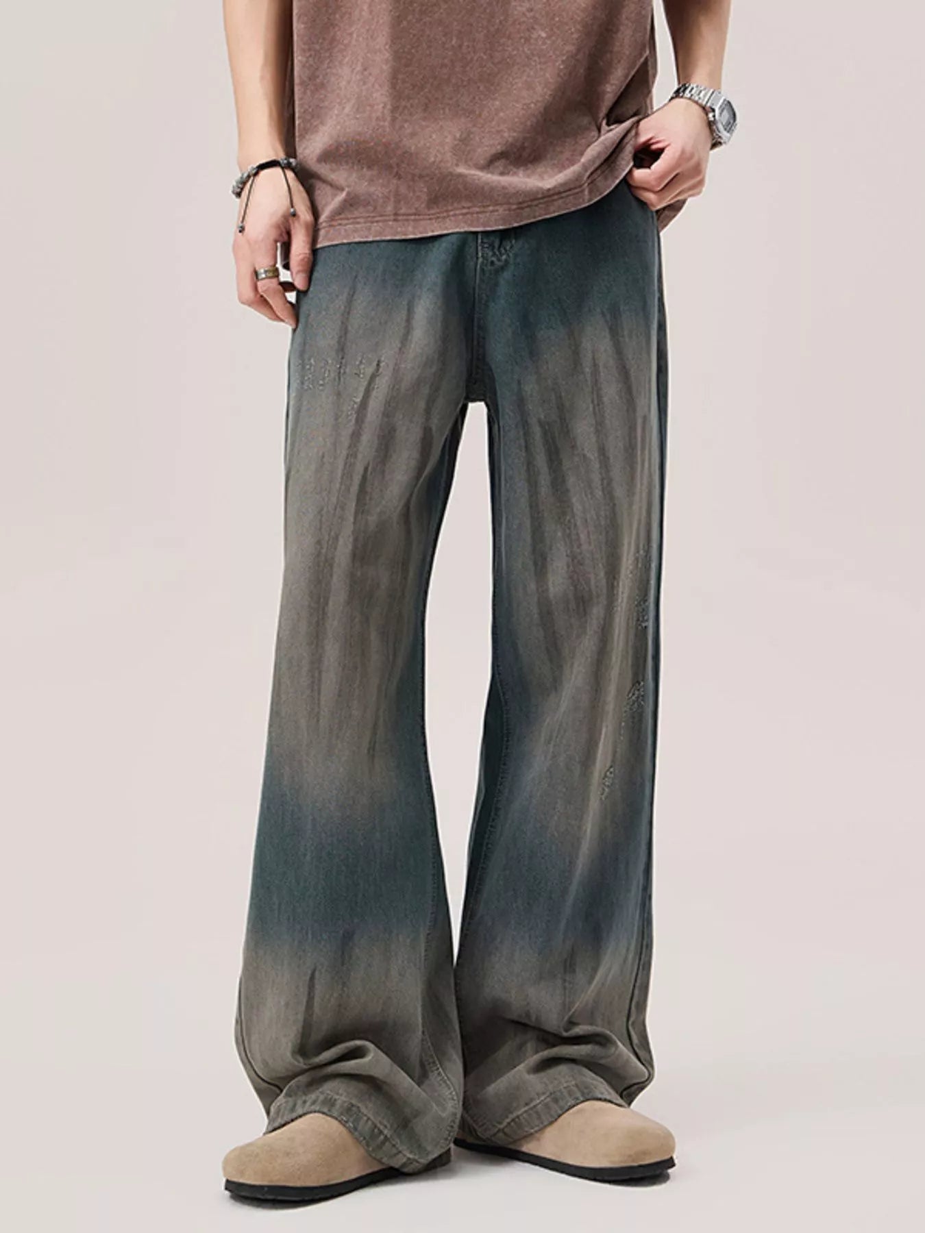 Men's Gradient Wash Wide Leg Jeans