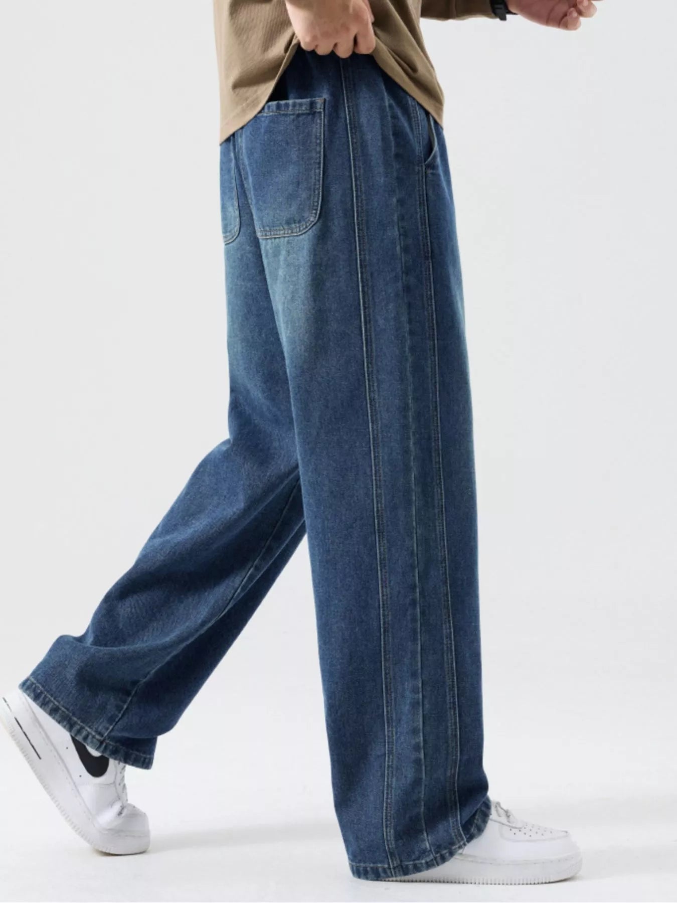 Men's Plus Size Casual Drawstring Wide-Leg Jeans
