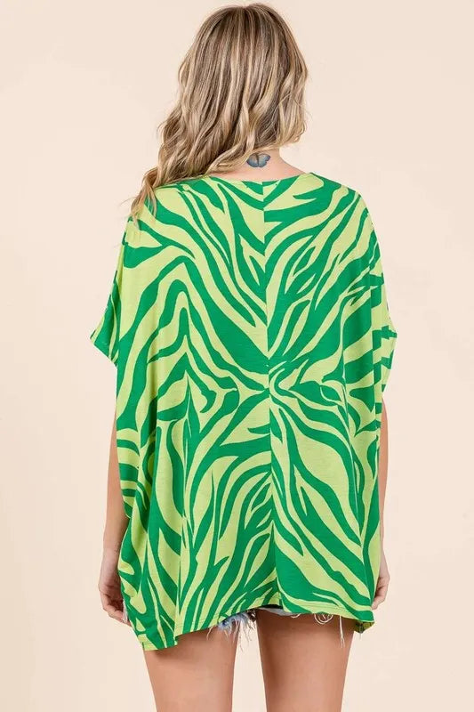 Mittoshop Zebra Print V-Neck Short Sleeve Oversized Top