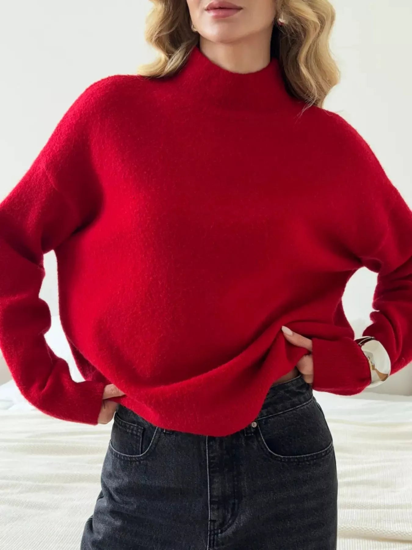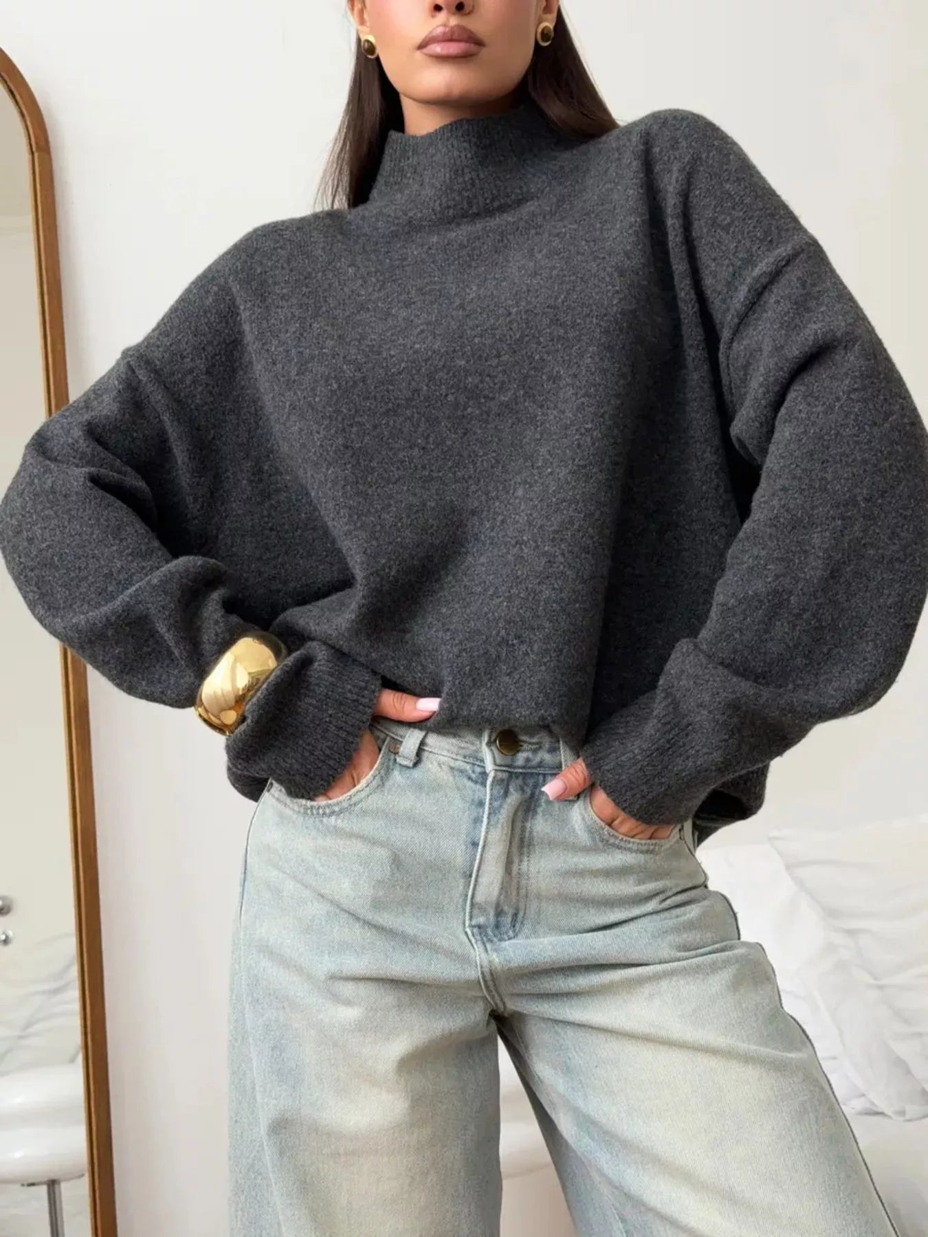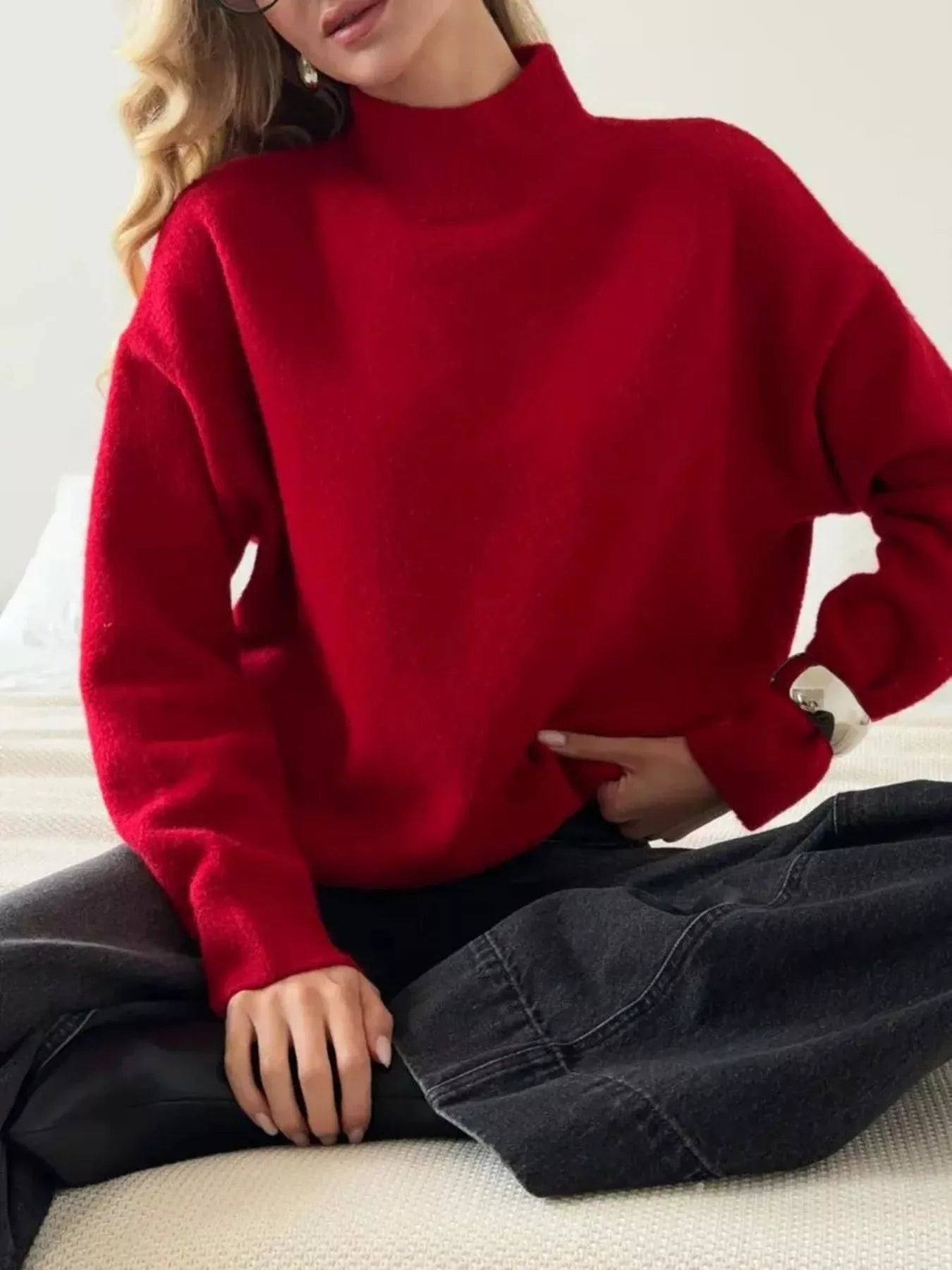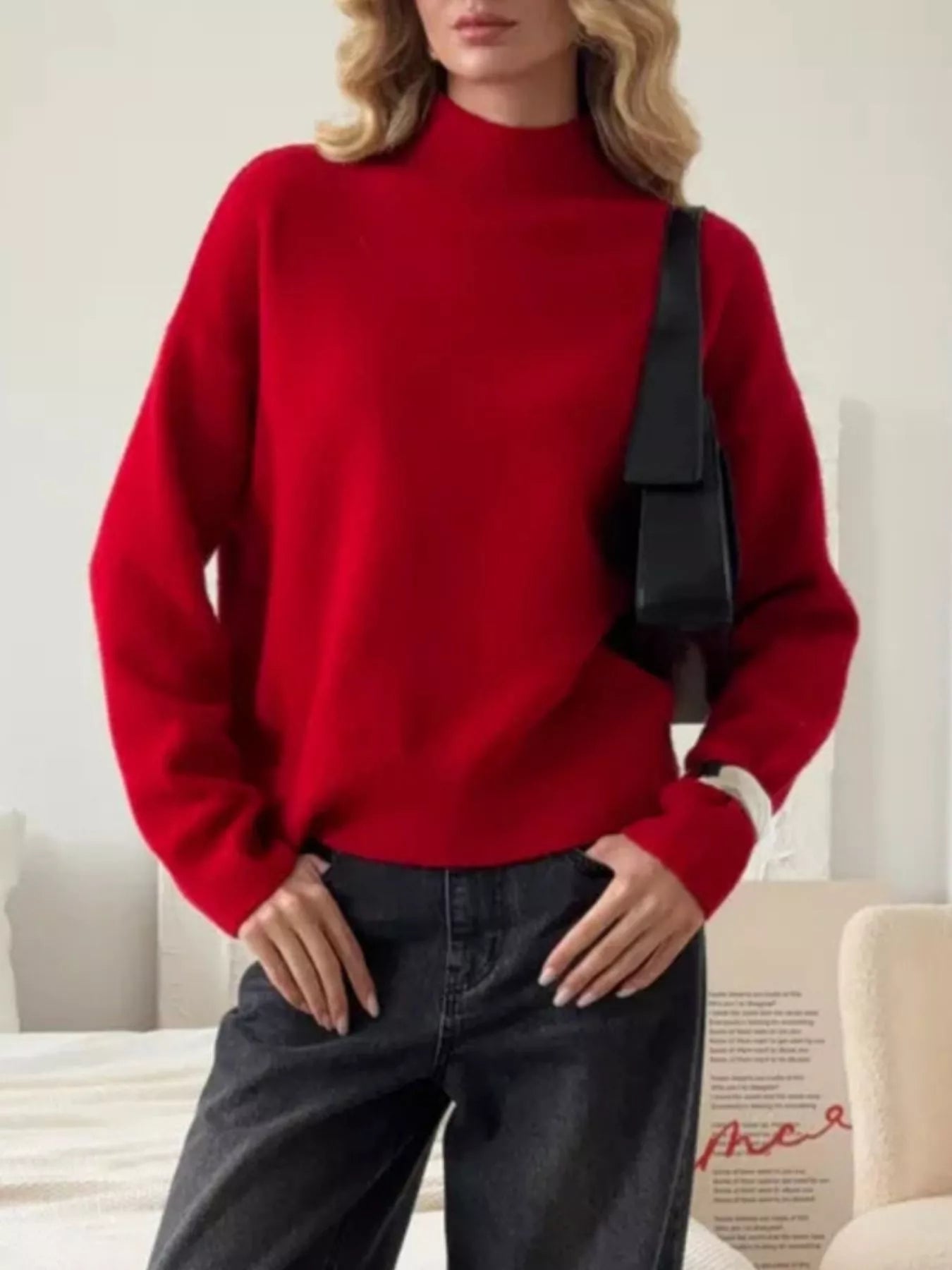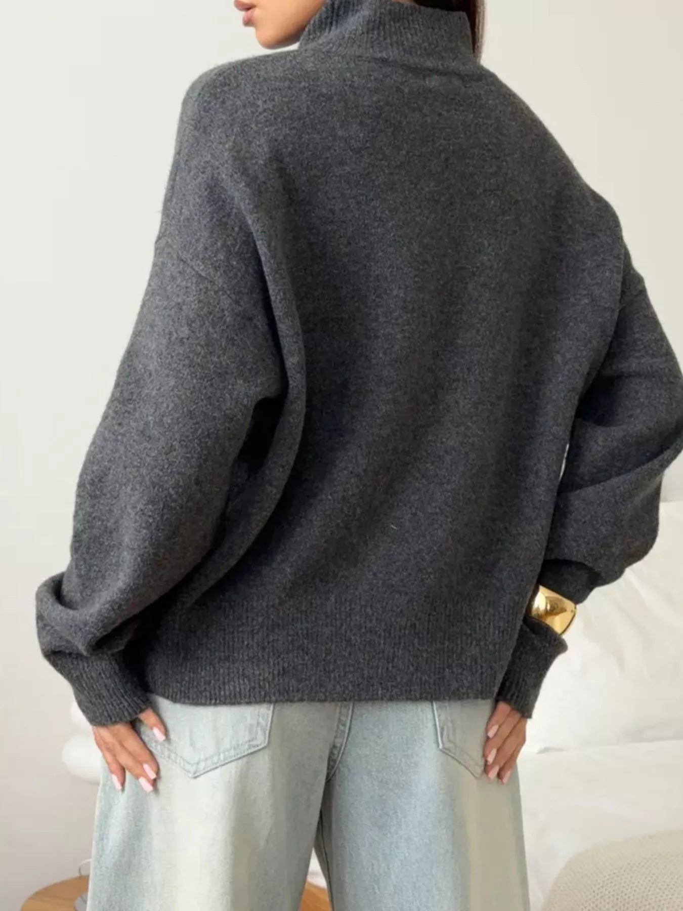 Mock Neck Dropped Shoulder Sweater