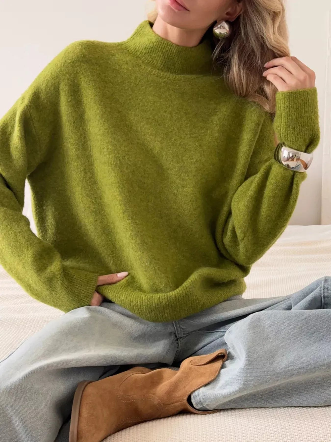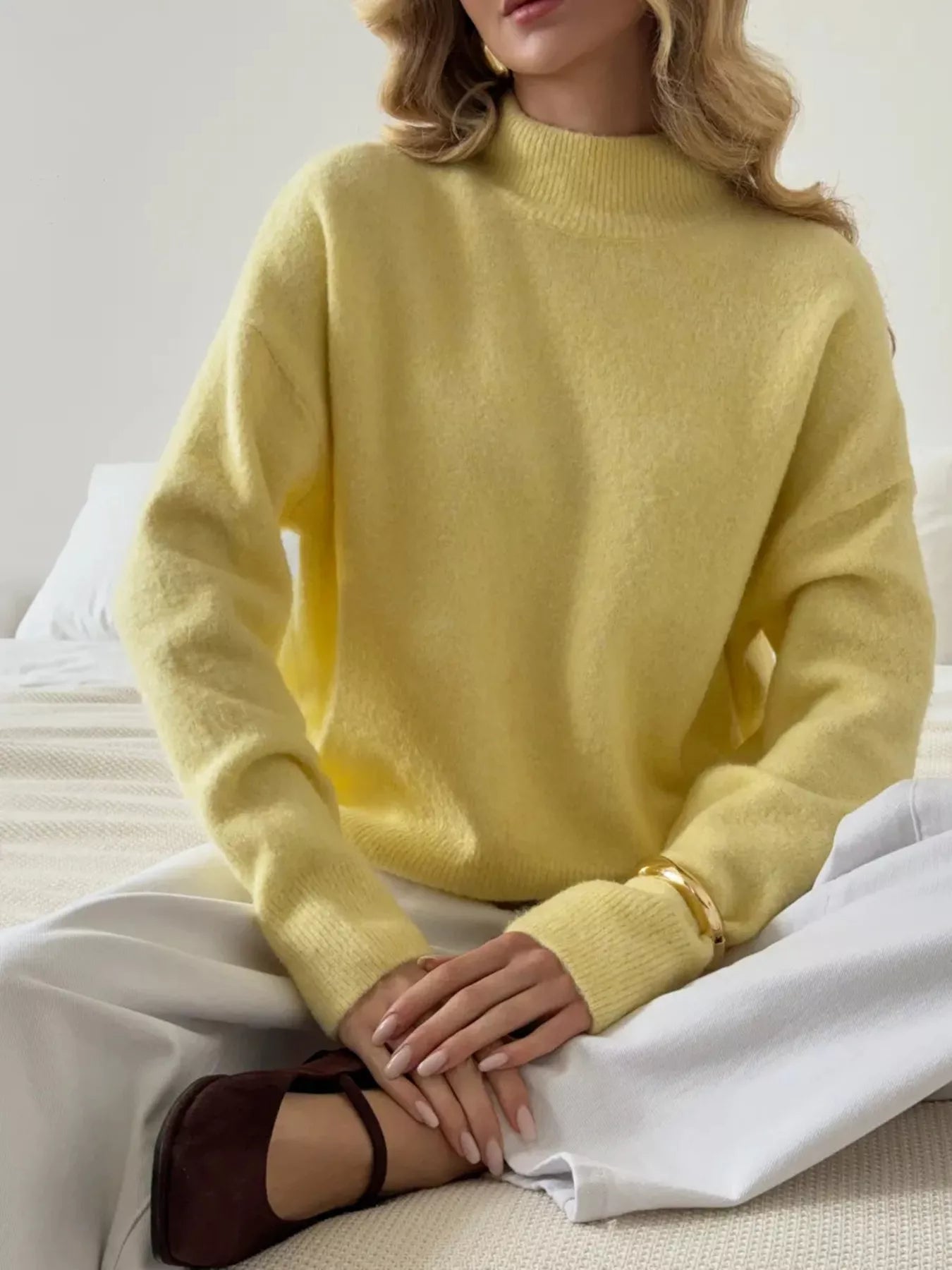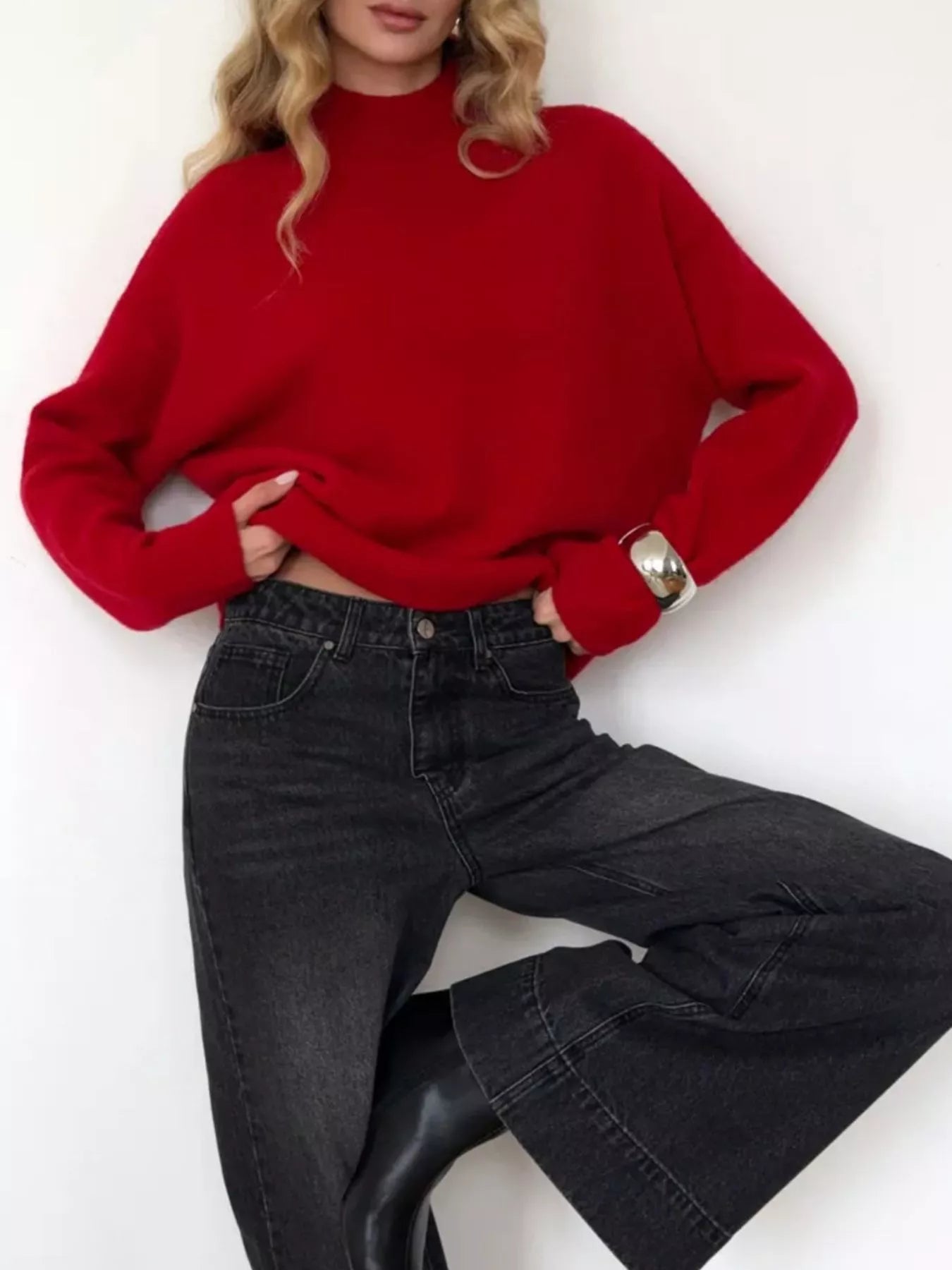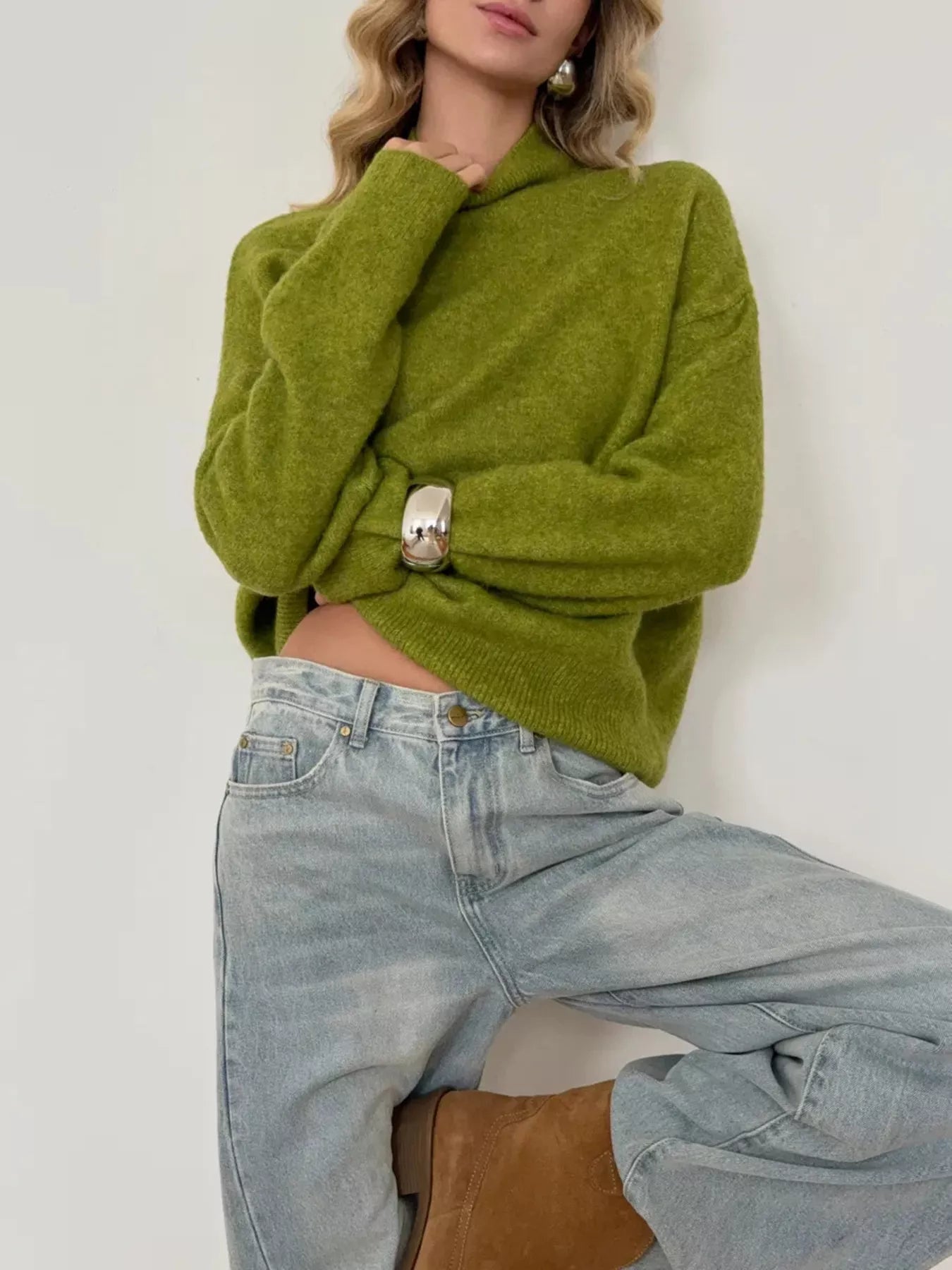 Mock Neck Dropped Shoulder Sweater