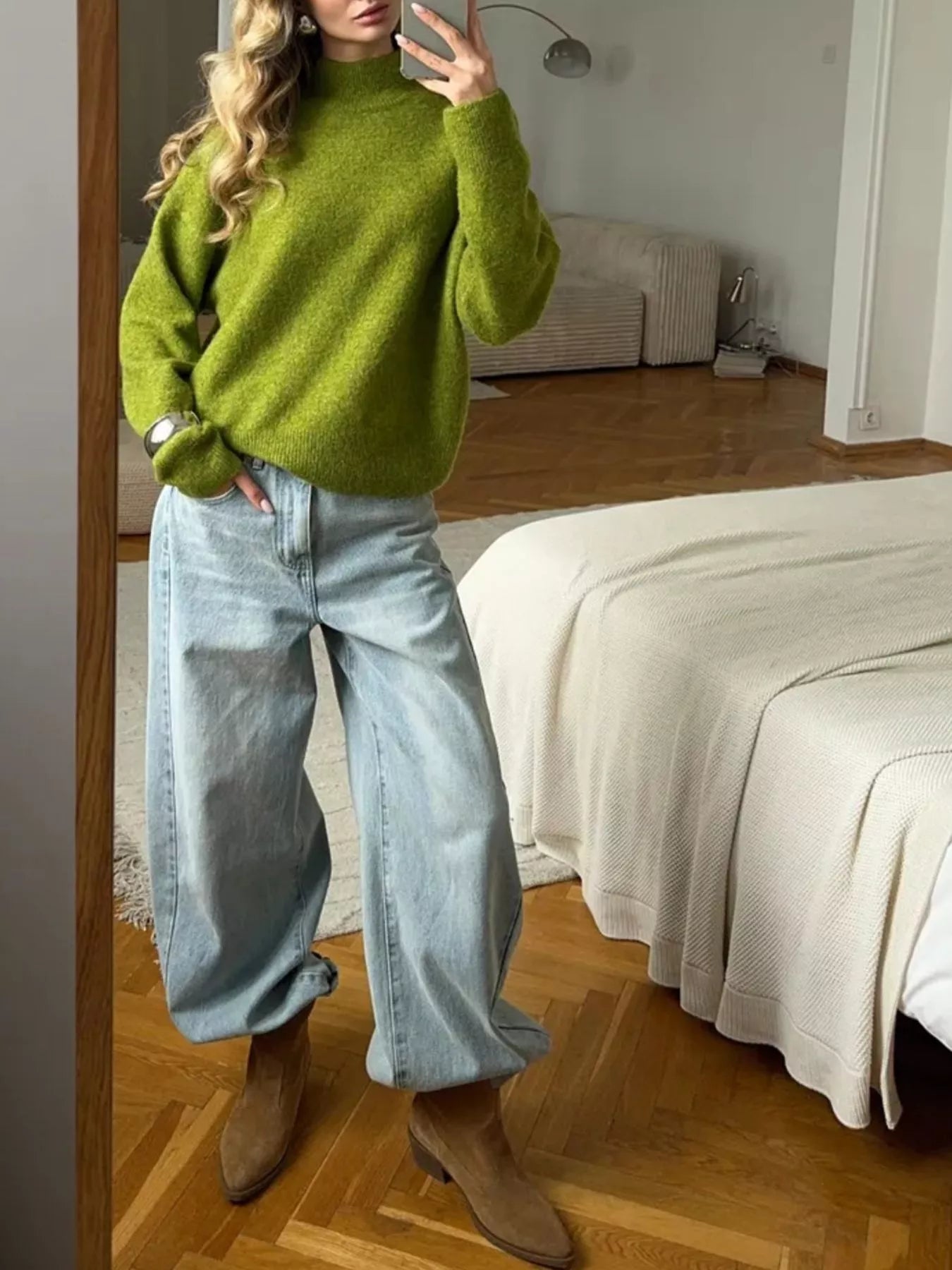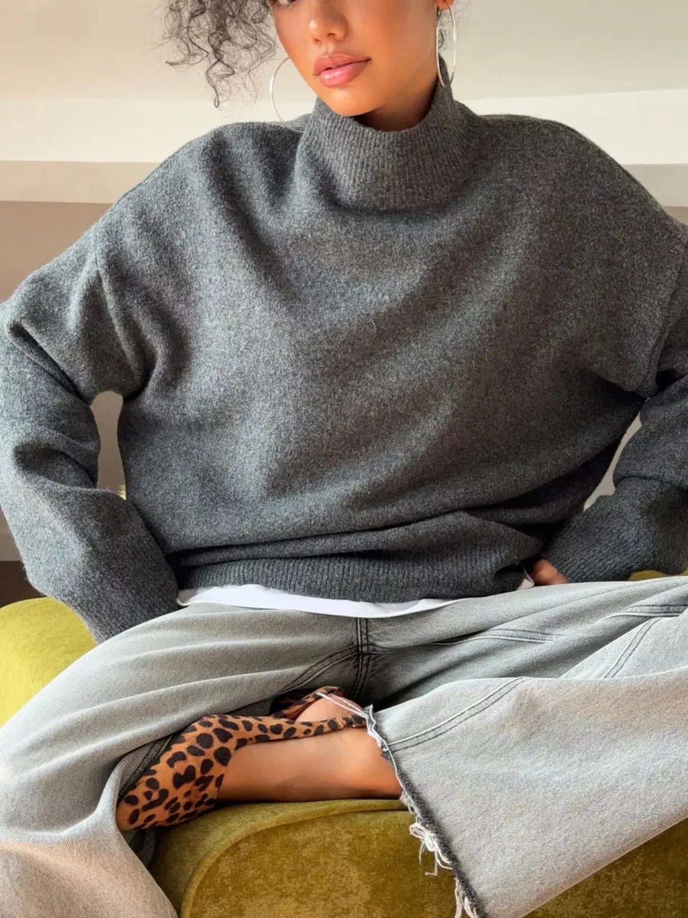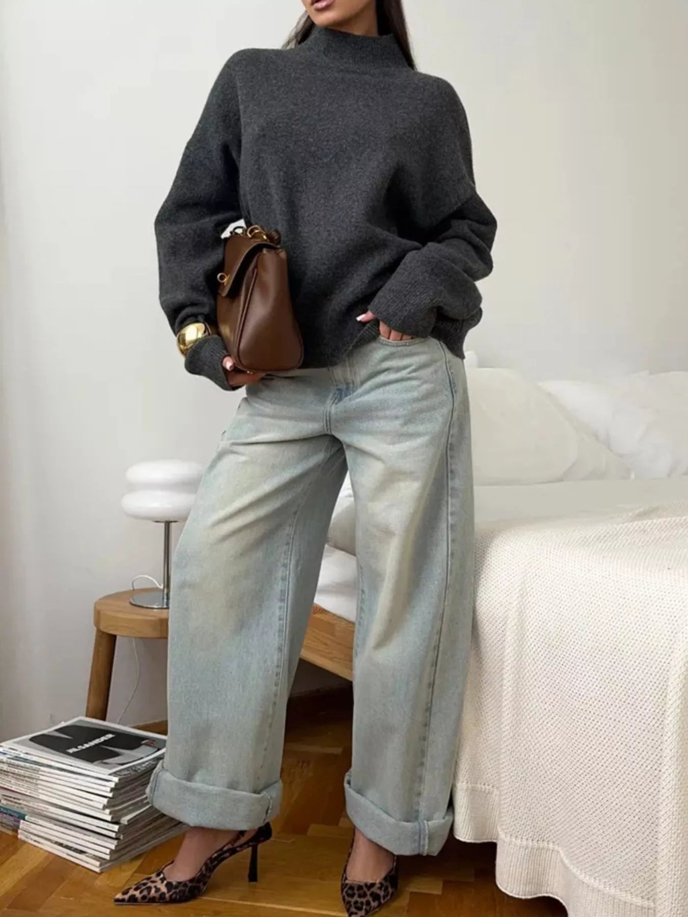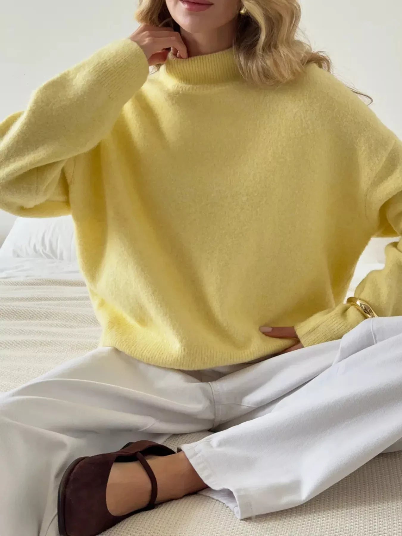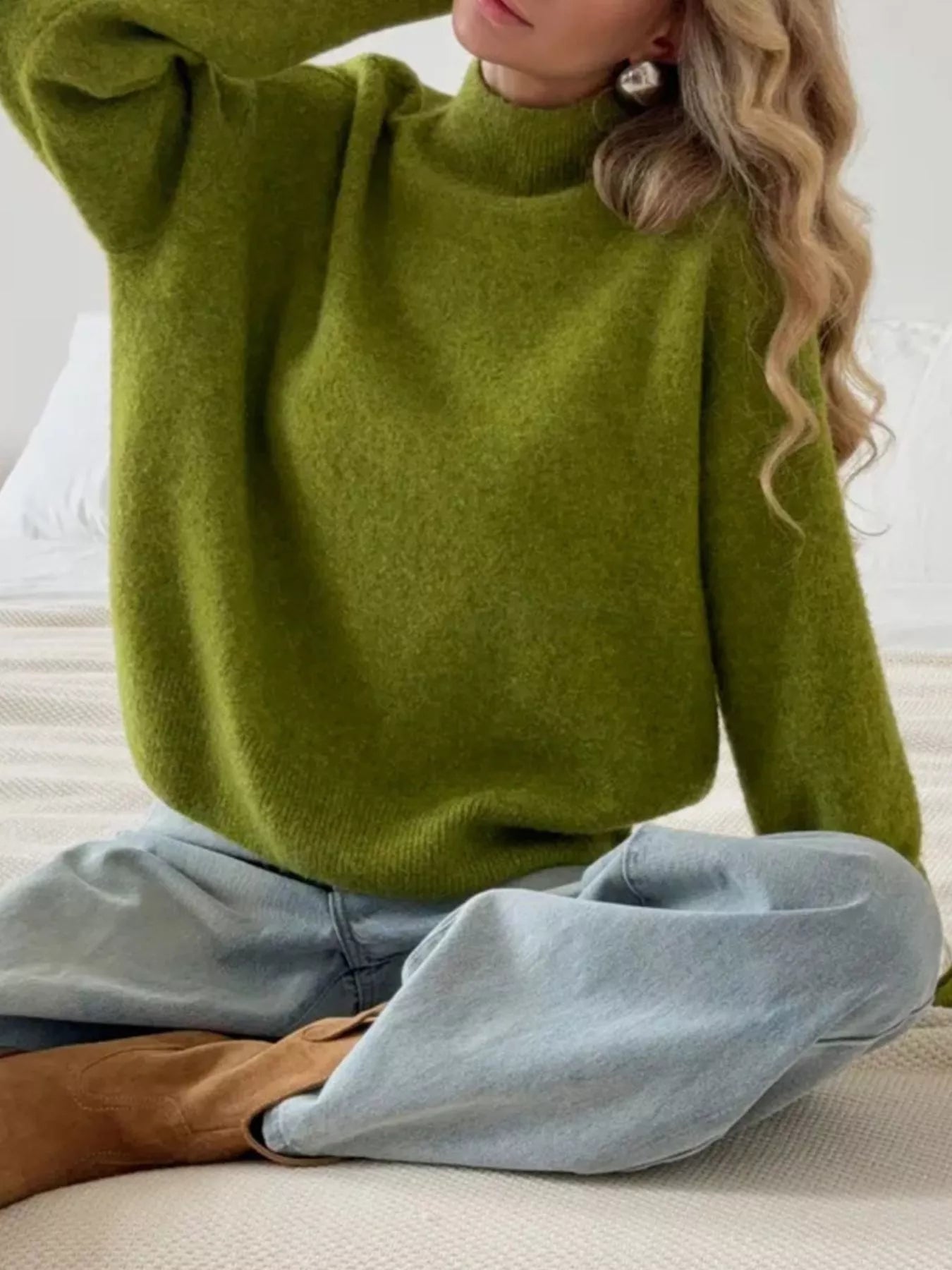 Mock Neck Dropped Shoulder Sweater