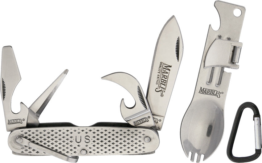 Includes G.I. Utility knife and Camper's Friend multitool. Knife is 3 5/8 closed. 440 stainless construction. 2 1/2 spear point... Read more