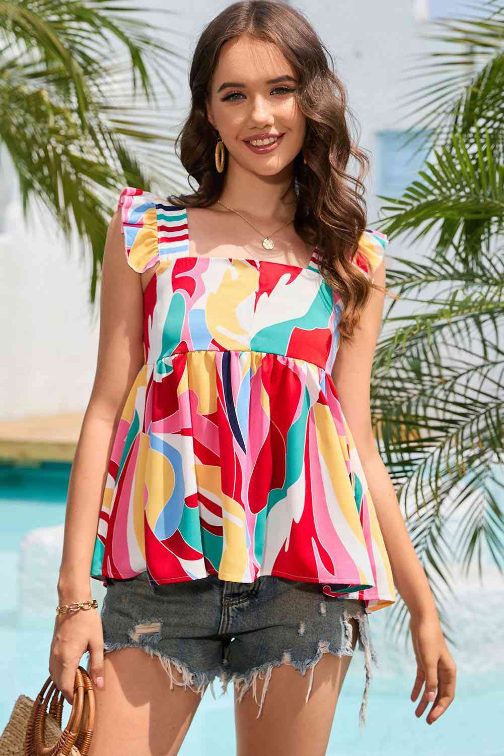 Pattern type: Printed Style: Vacation Features: Basic style Neckline: Square neck Length: Long Sleeve length: Short sleeves Sleeve type: Flutter... Read more