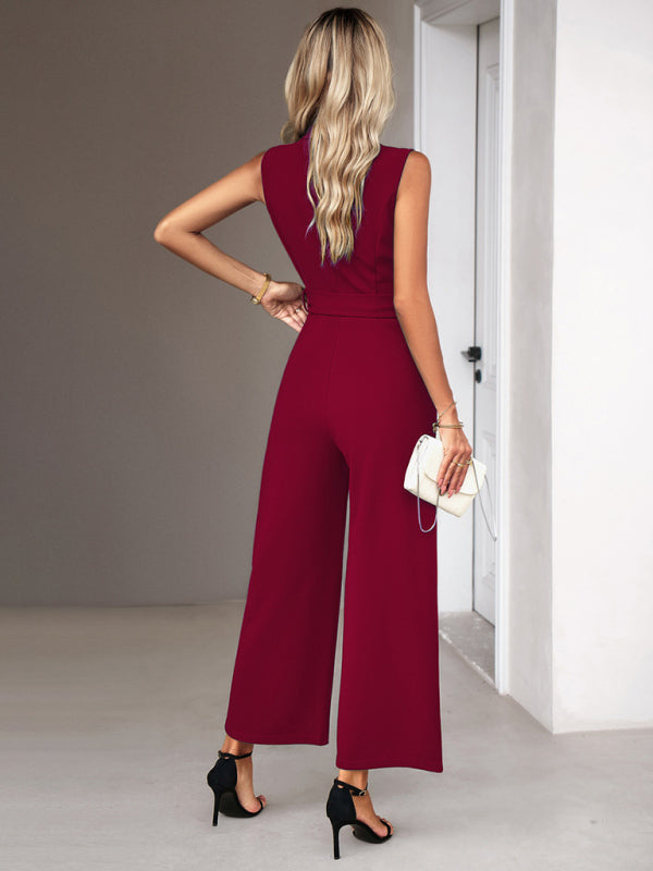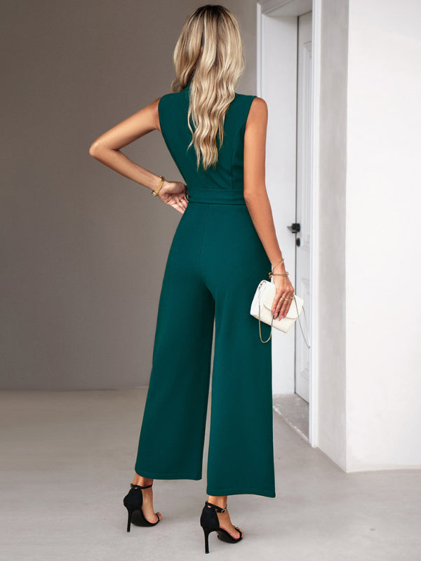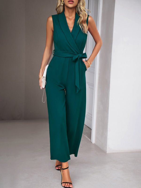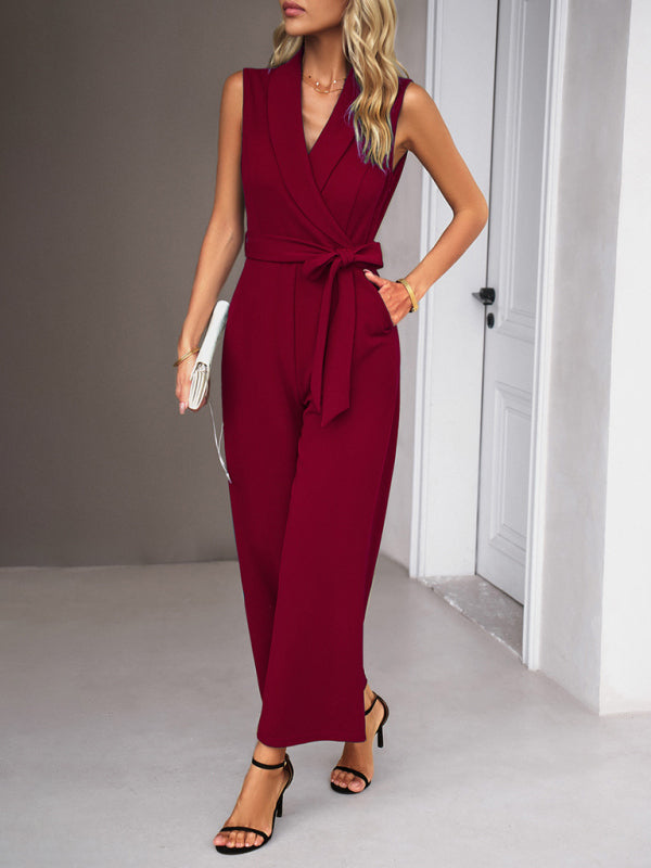 New women's elegant V-neck tie commuter sleeveless jumpsuit