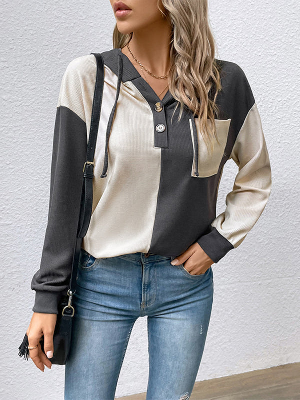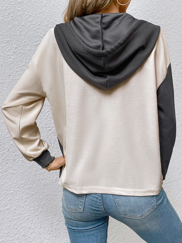 New women's long-sleeved contrast color hooded sweater
